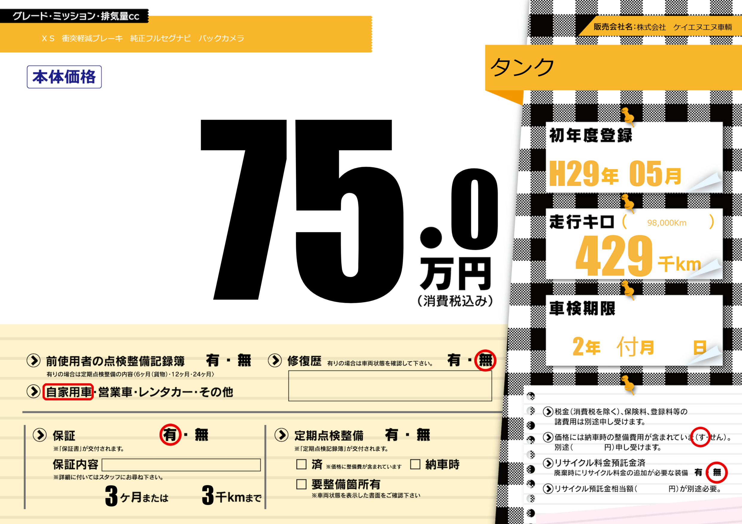 保証付き 保証内容(---) 3ヶ月または(3)千kmまで |
