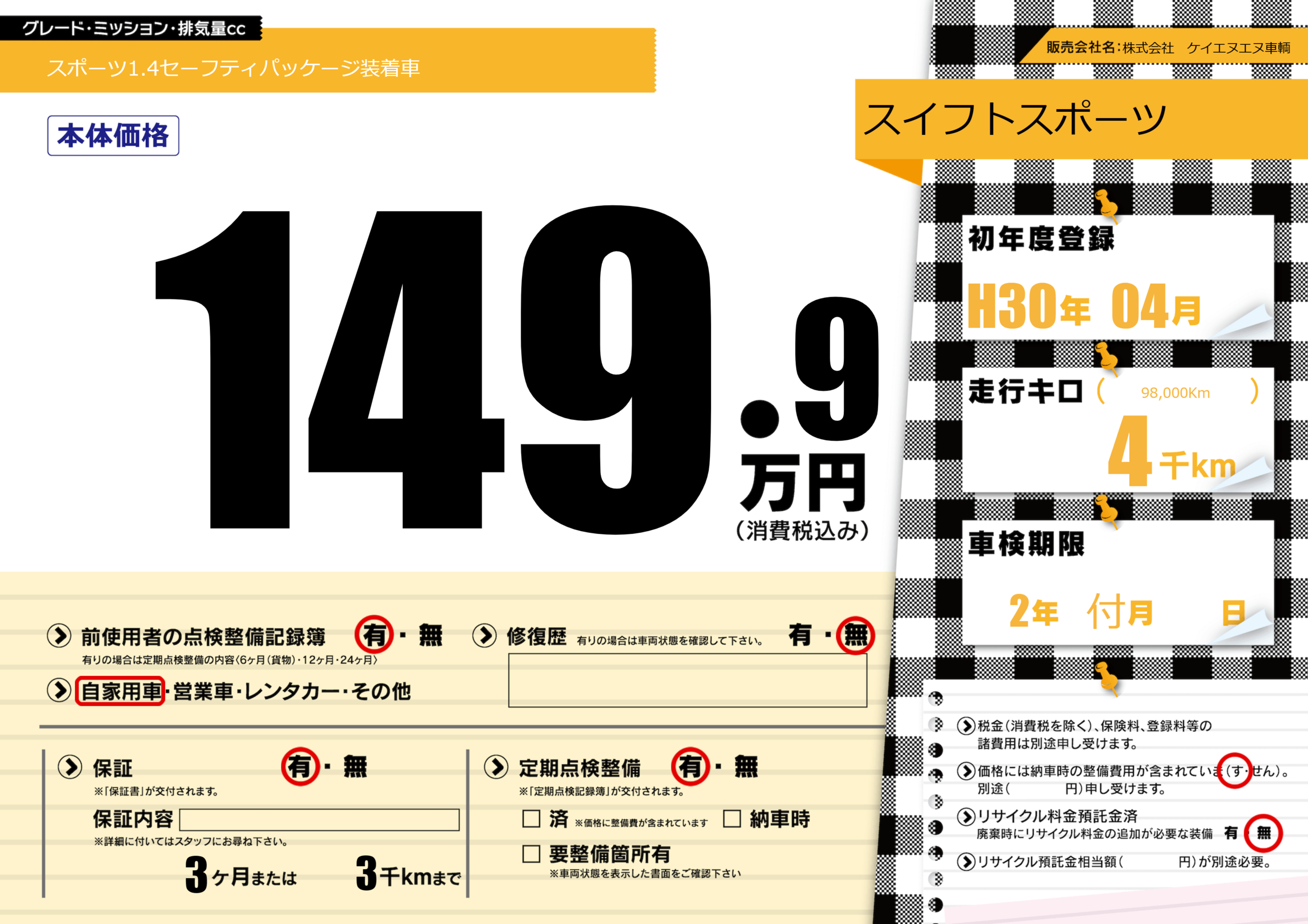 保証付き 保証内容(---) 3ヶ月または(3)千kmまで |