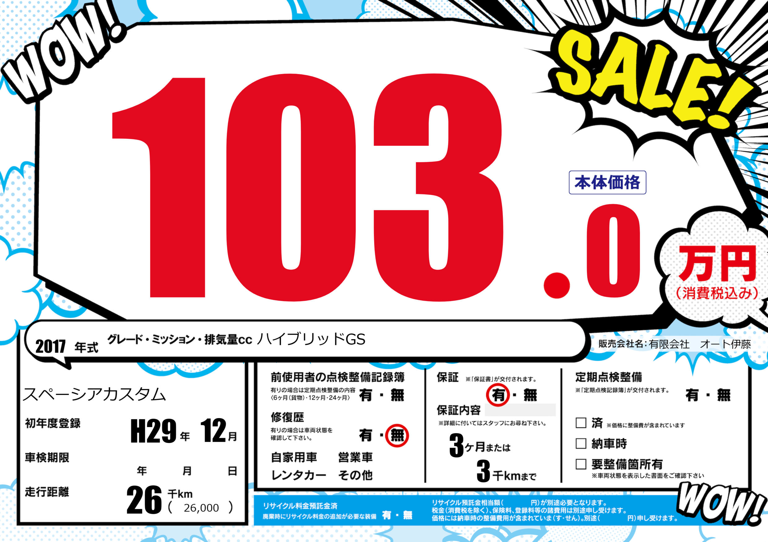 | 車名 | スペーシアカスタム | グレード ミッション 排気量 |