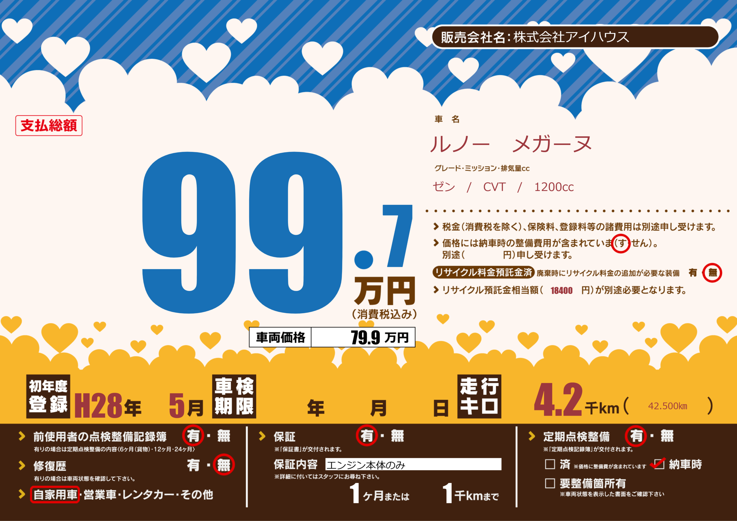 保証内容(エンジン本体のみ) 1ヶ月または1千km