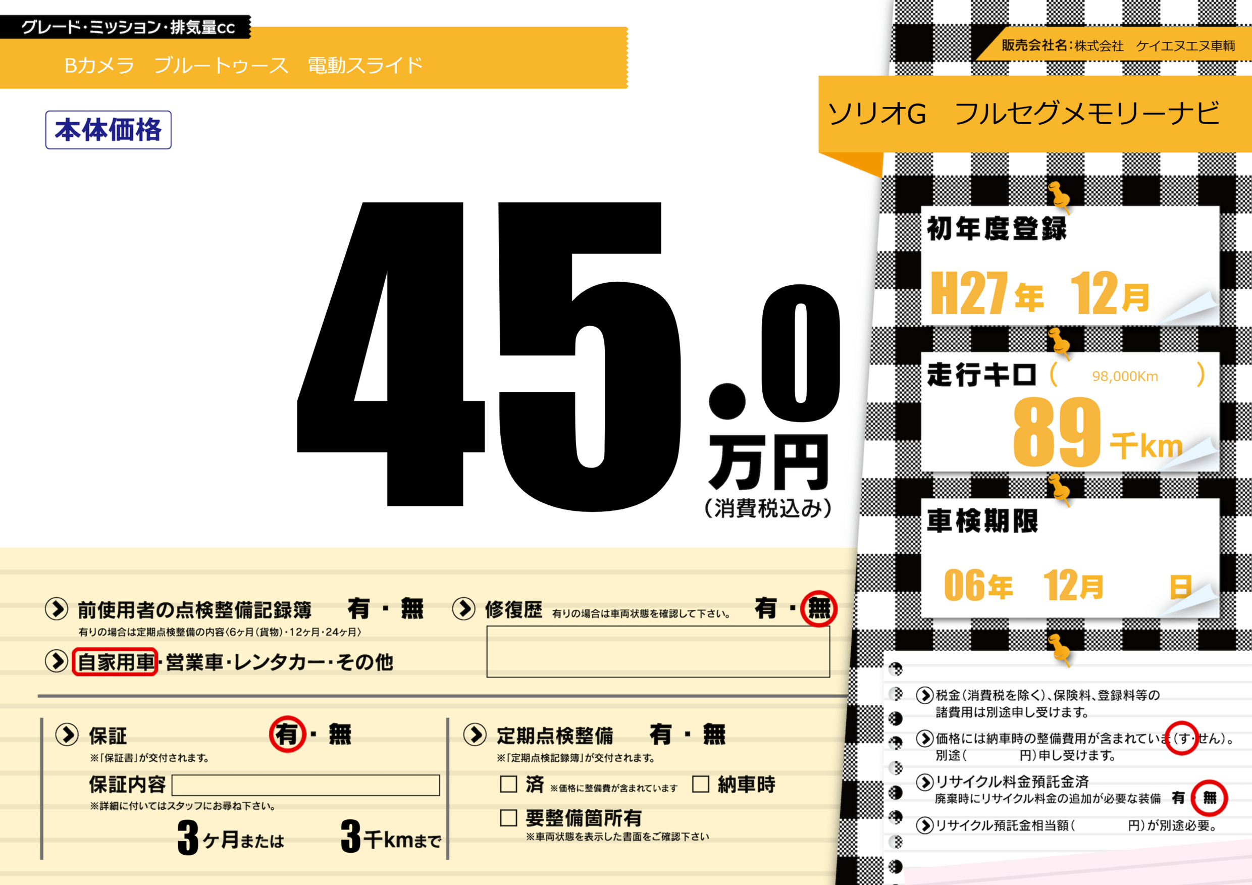 保証付き 保証内容(---) 3ヶ月または(3)千kmまで |