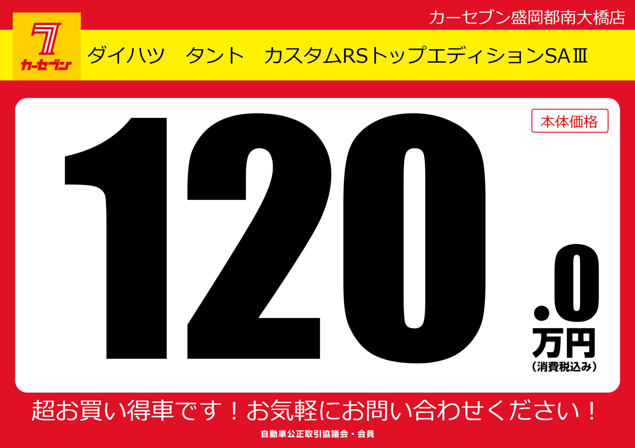 | 車名 | ダイハツ タント カスタムRSトップエディションSAⅢ | グレード ミッション 排気量 |
