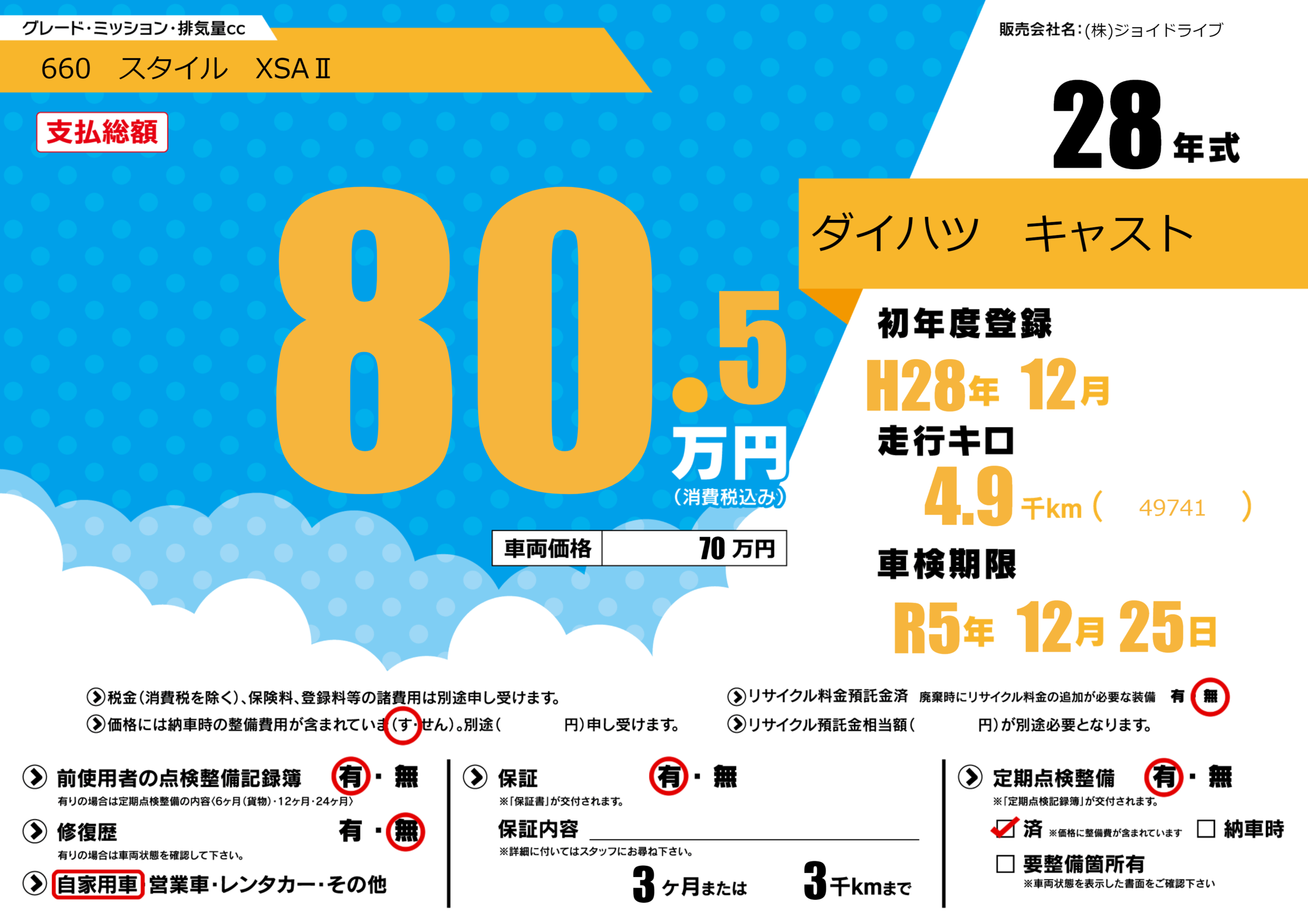 | 定期点検整備 | 定期点検整備あり 定期点検整備済み | ||
