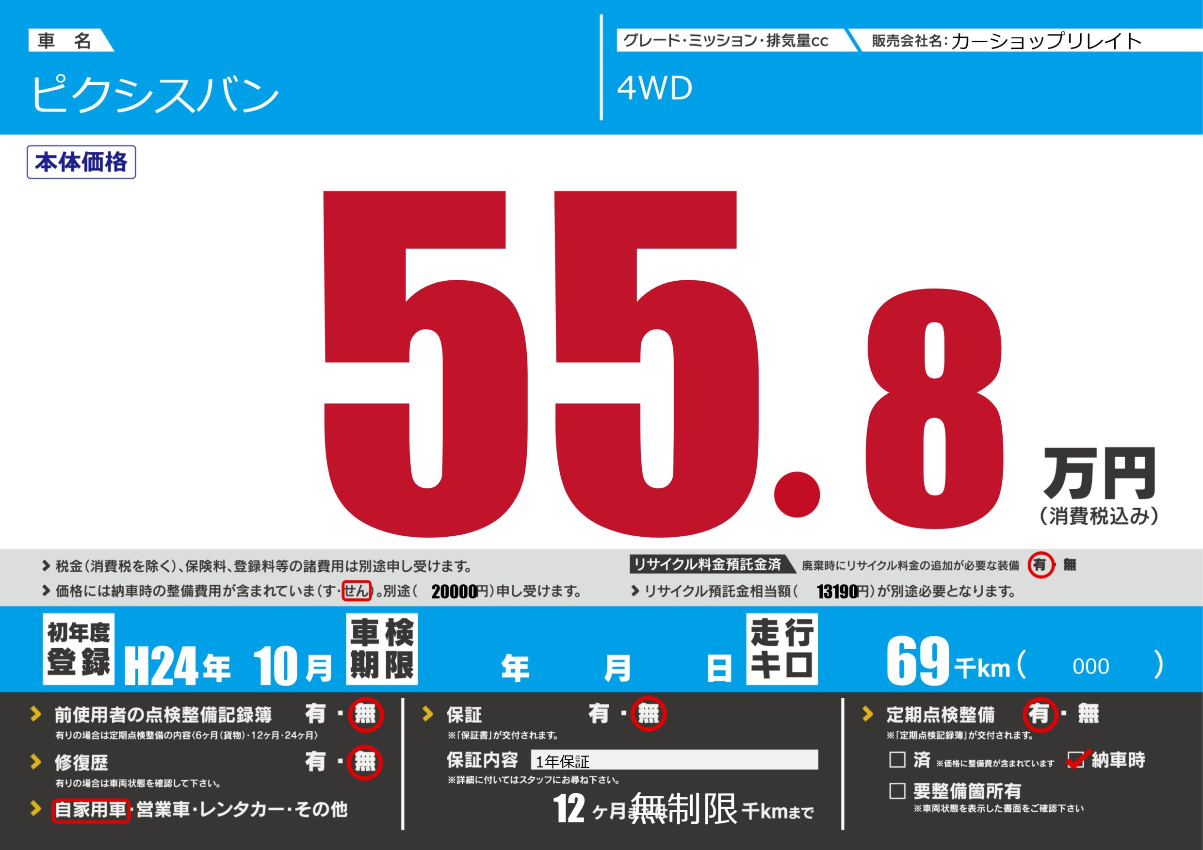| 定期点検整備 | 定期点検整備あり 納車時あり | ||