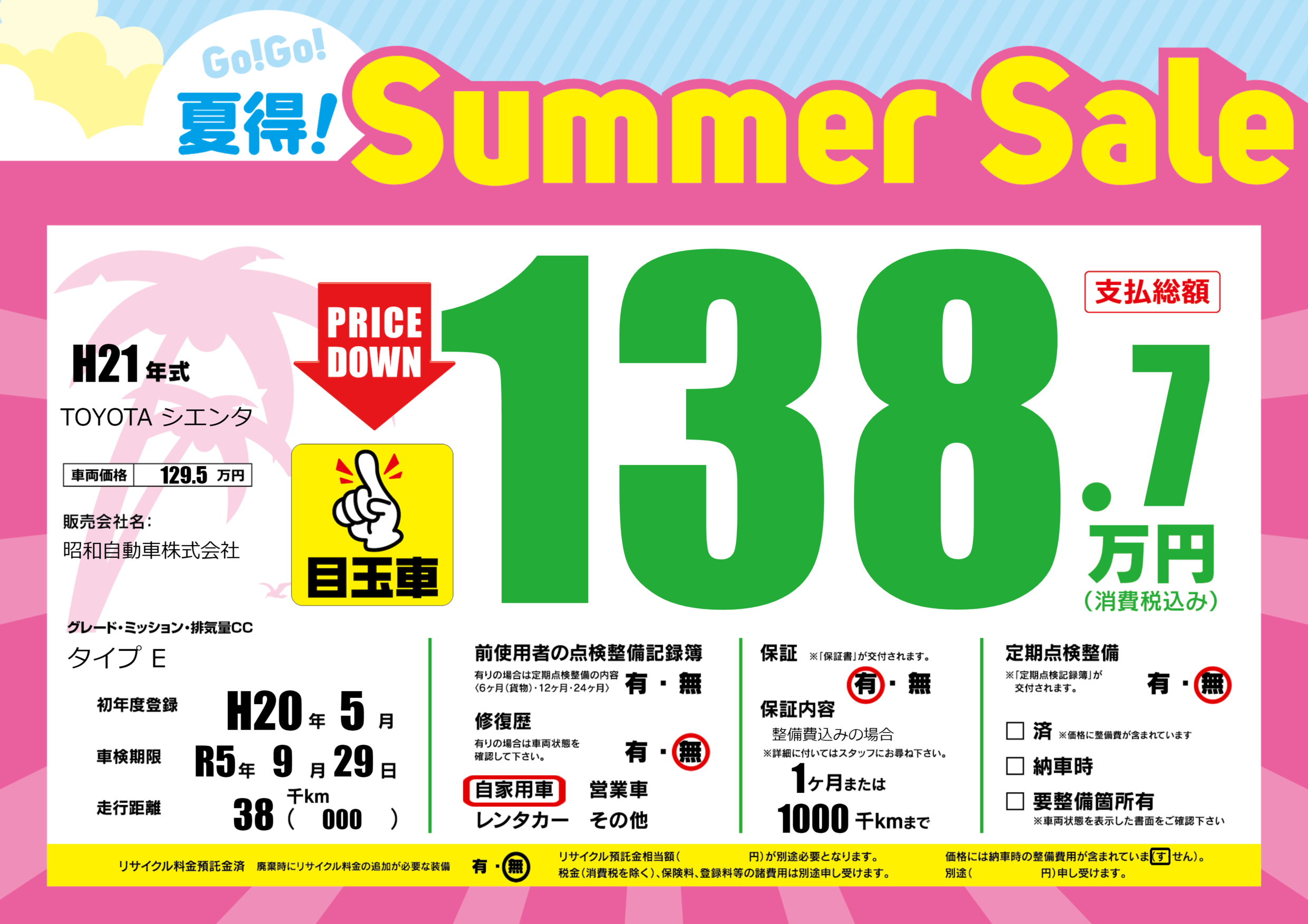 あり | 車検制限 | R5年9月29月 |