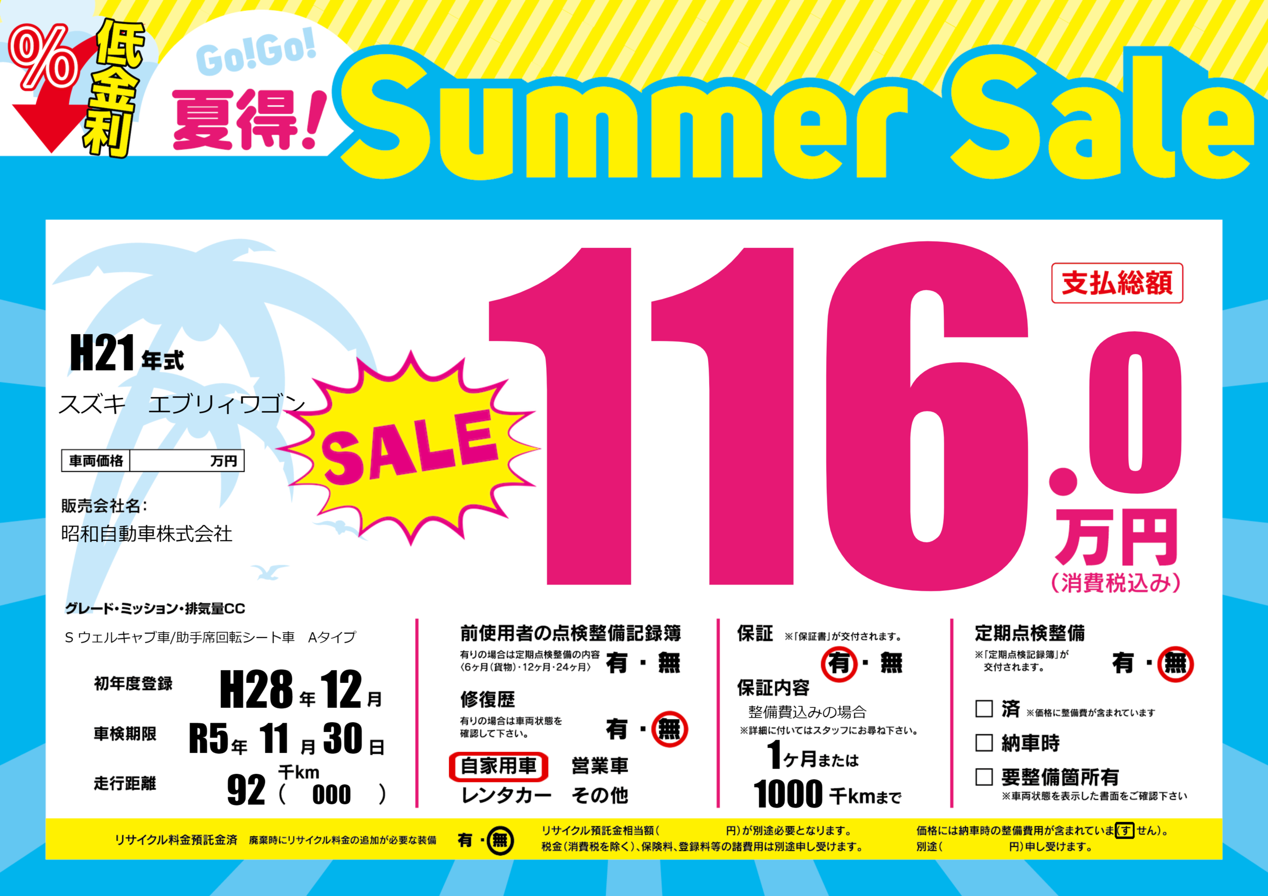 | 車名 | スズキ エブリィワゴン | グレード ミッション 排気量 |