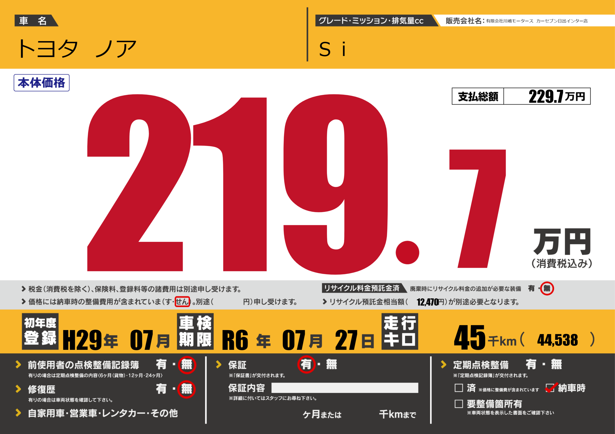 | 車検制限 | R6年 07月 27日 | ||