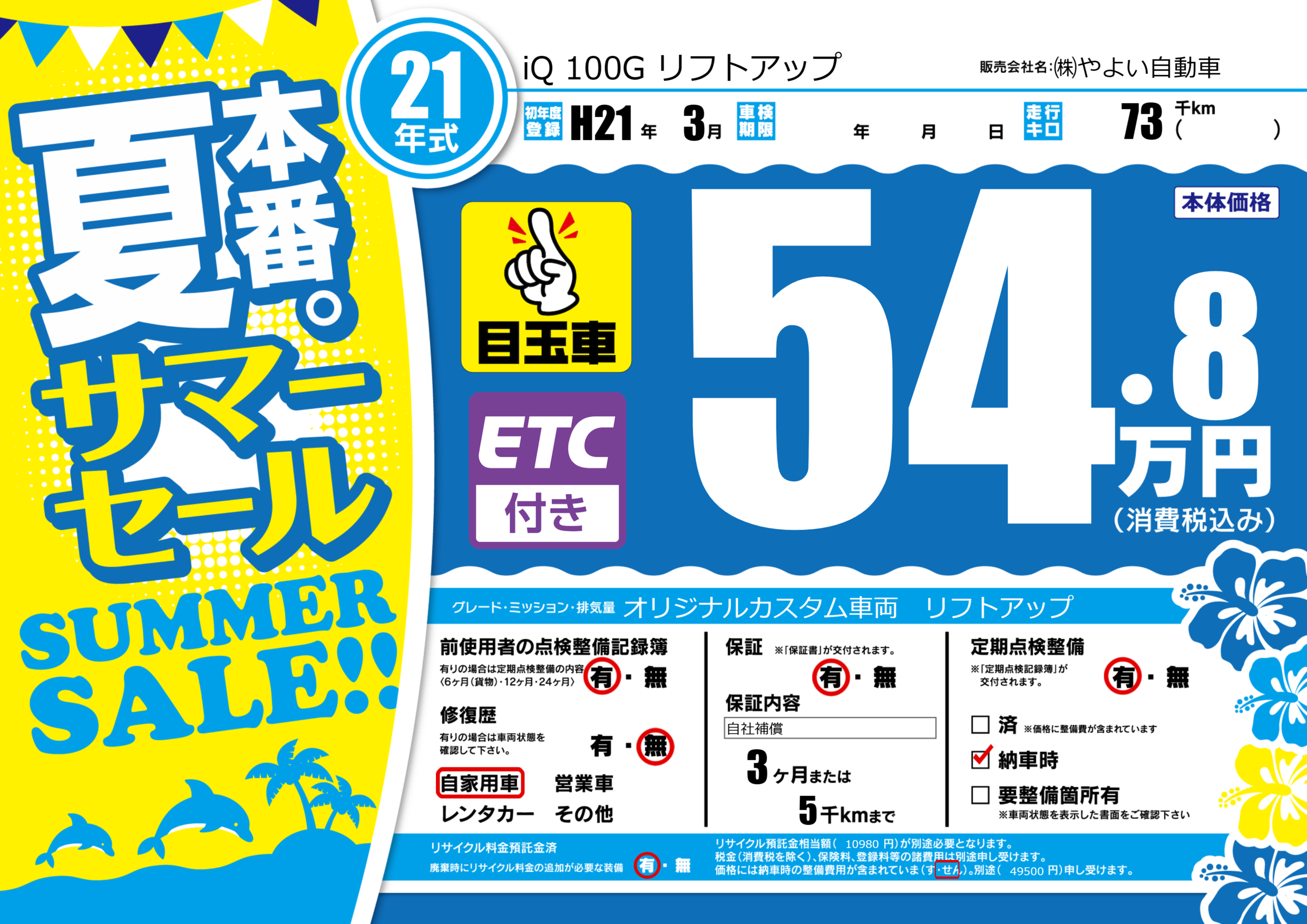 | 走行キロ | 7.3万km | 初年度登録 | H21年3月 |