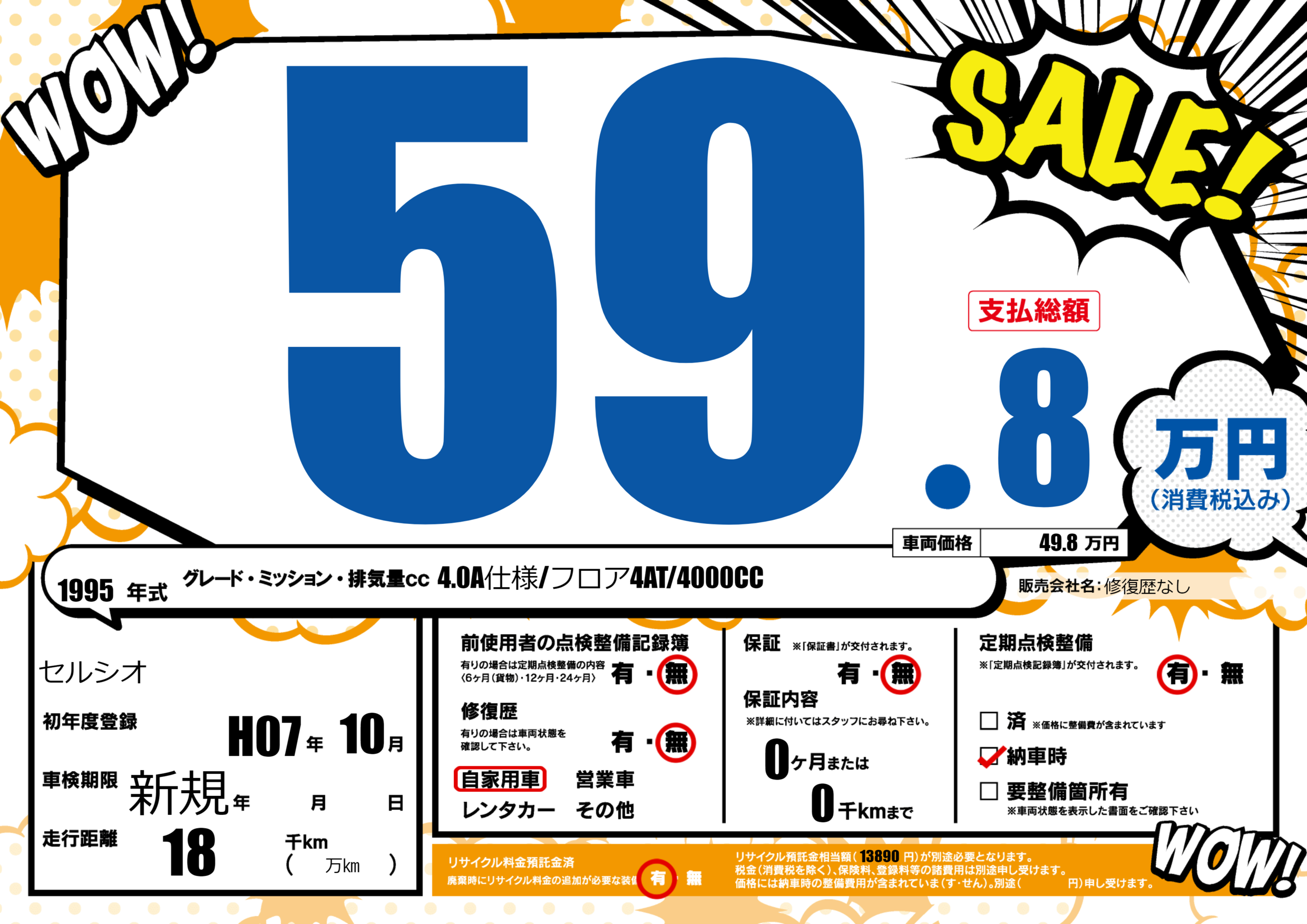 | 走行キロ | 1.8万km | 初年度登録 | H07年10月 |
