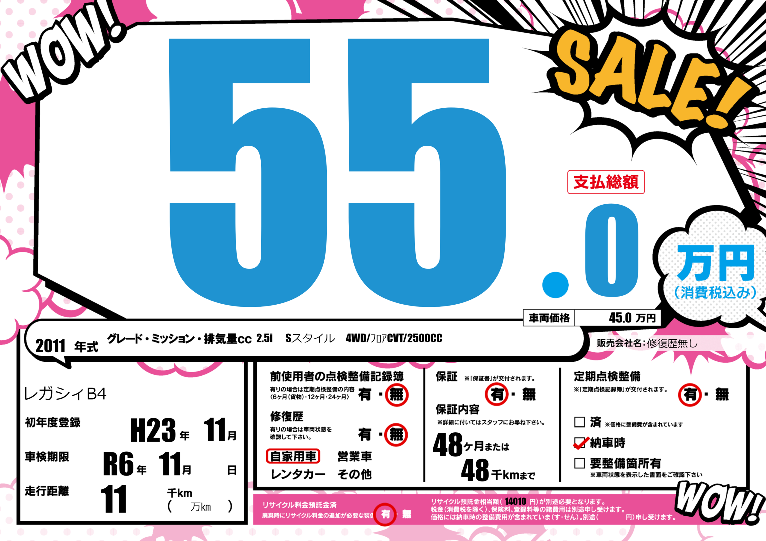 保証付き 保証内容(---) 48ヶ月または(48)千kmまで |