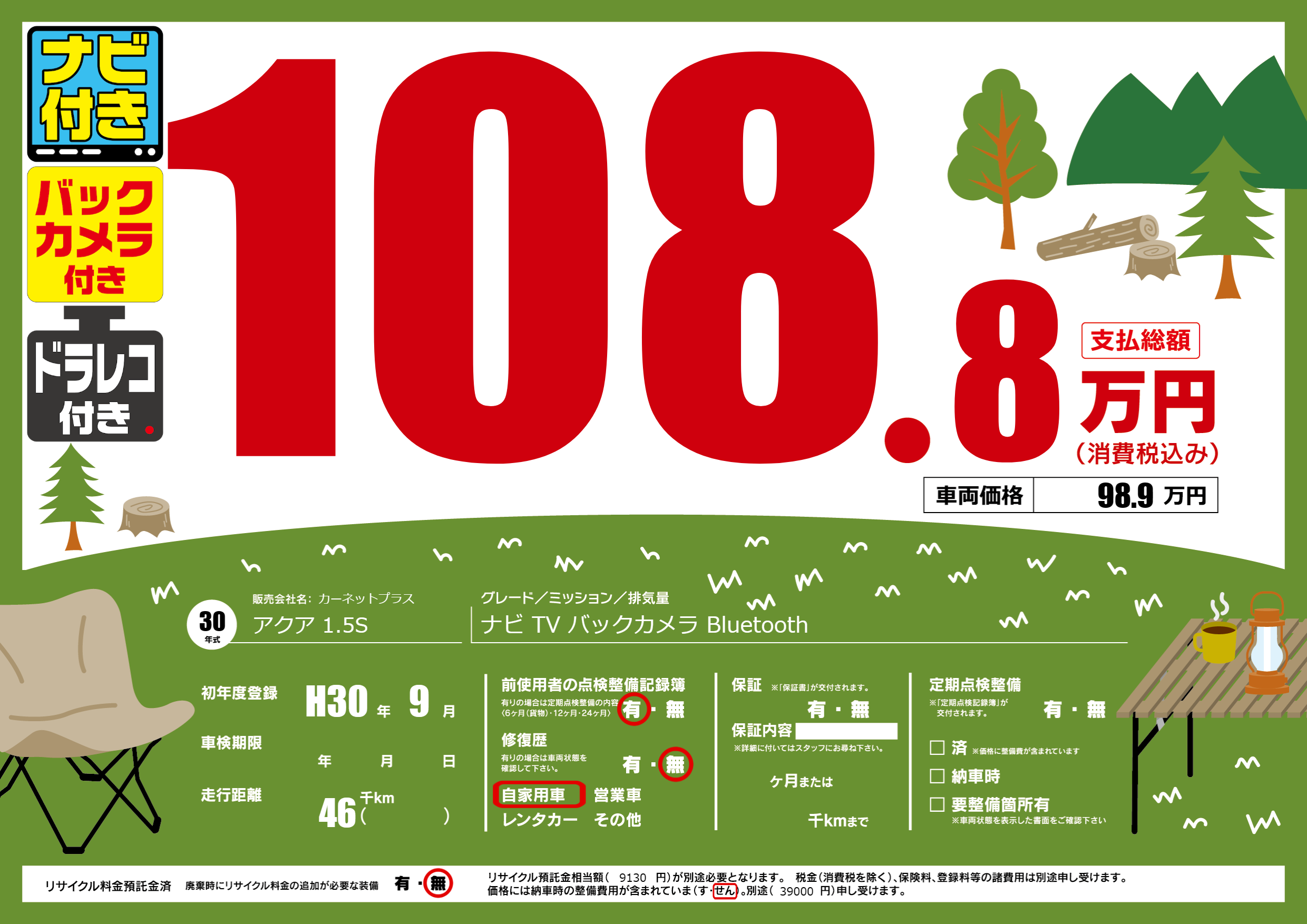 | 車名 | アクア 1.5S | グレード ミッション 排気量 |