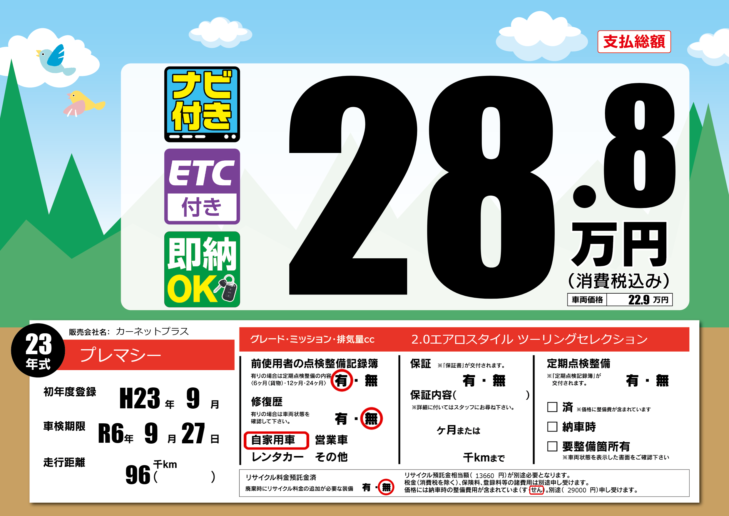 | 車名 | プレマシー | グレード ミッション 排気量 |