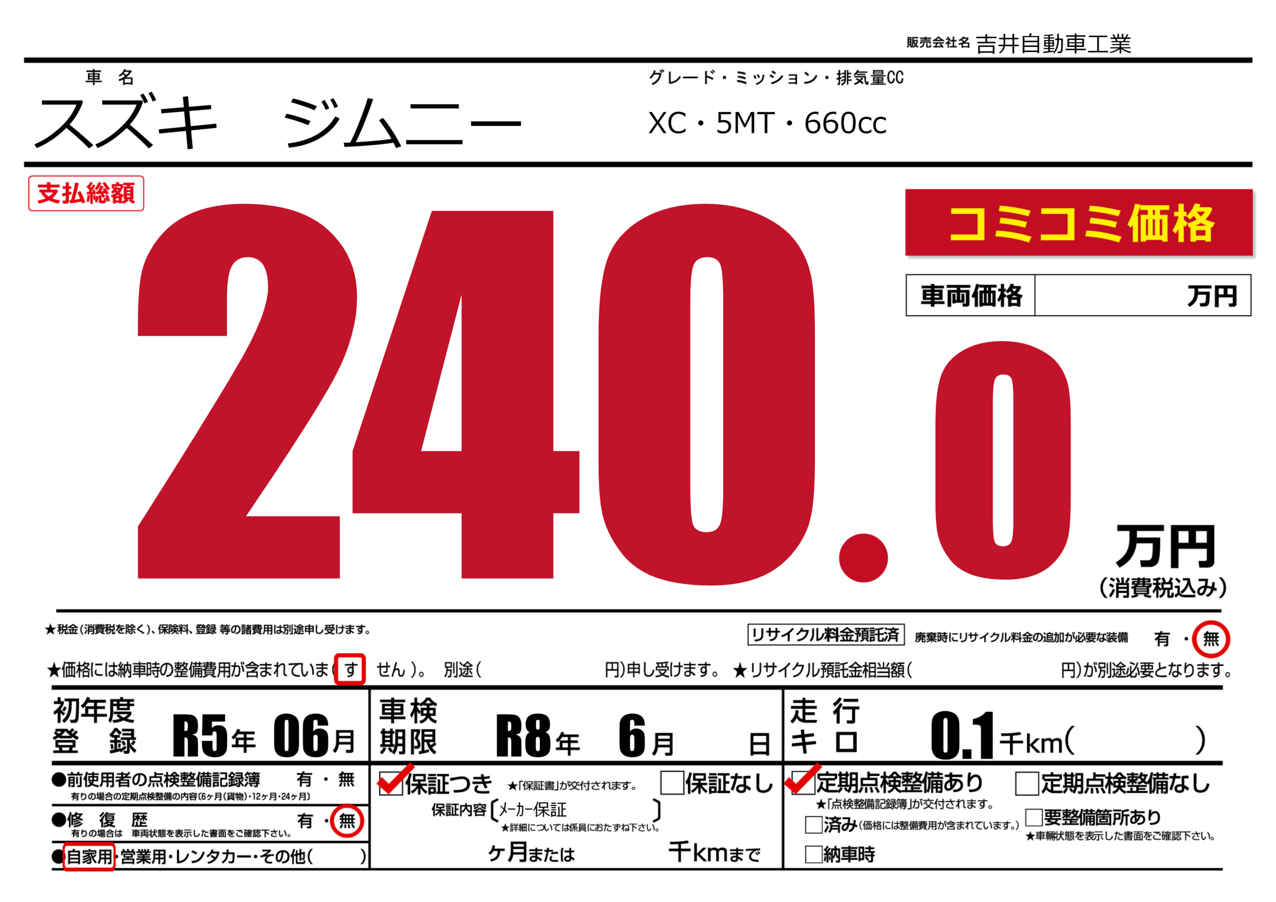 | 車検制限 | R8年 6月 - 日 | ||