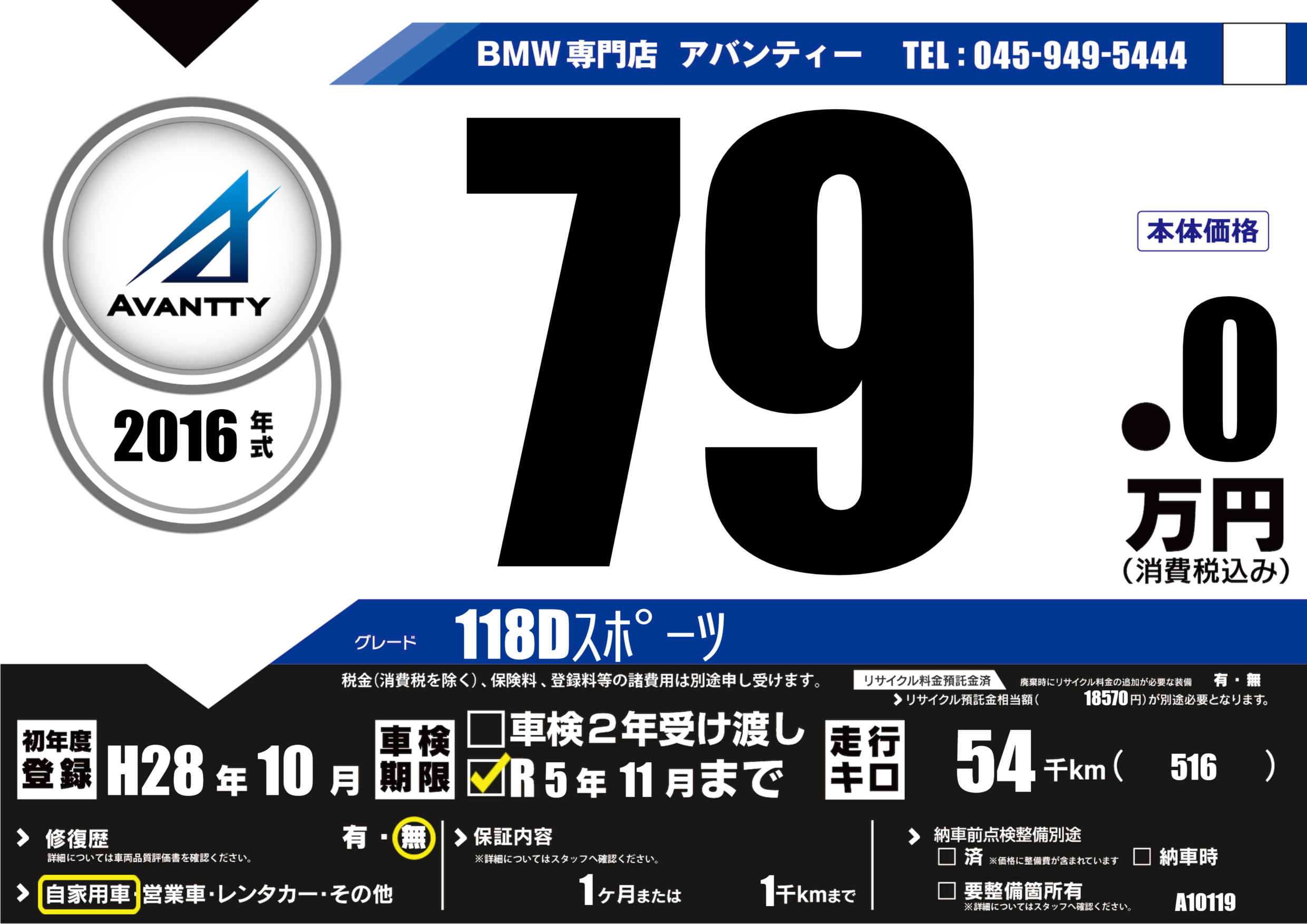 | 走行キロ | 5.4万km | 初年度登録 | H28年10月 |