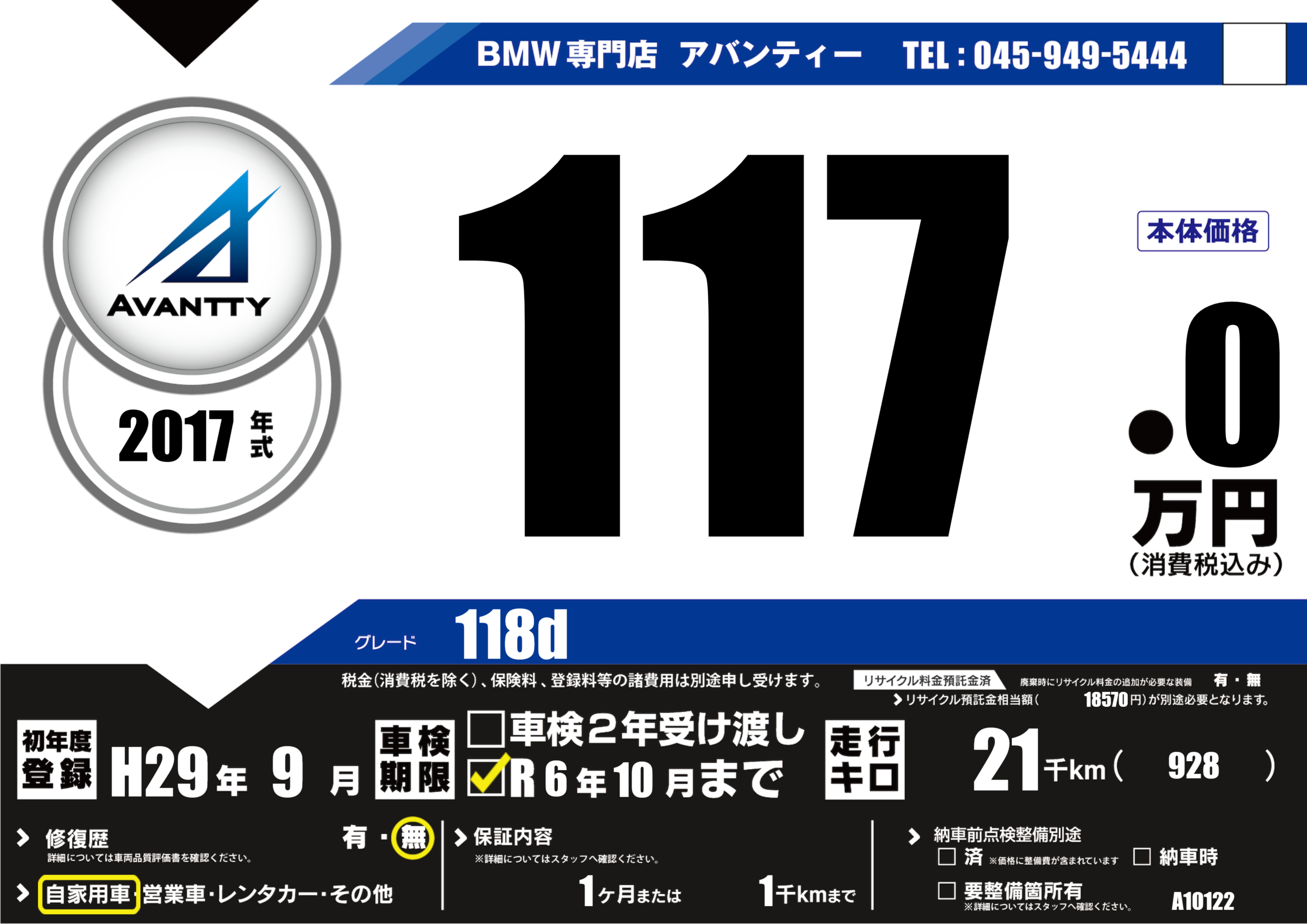 | 走行キロ | 2.1万km | 初年度登録 | H29年9月 |