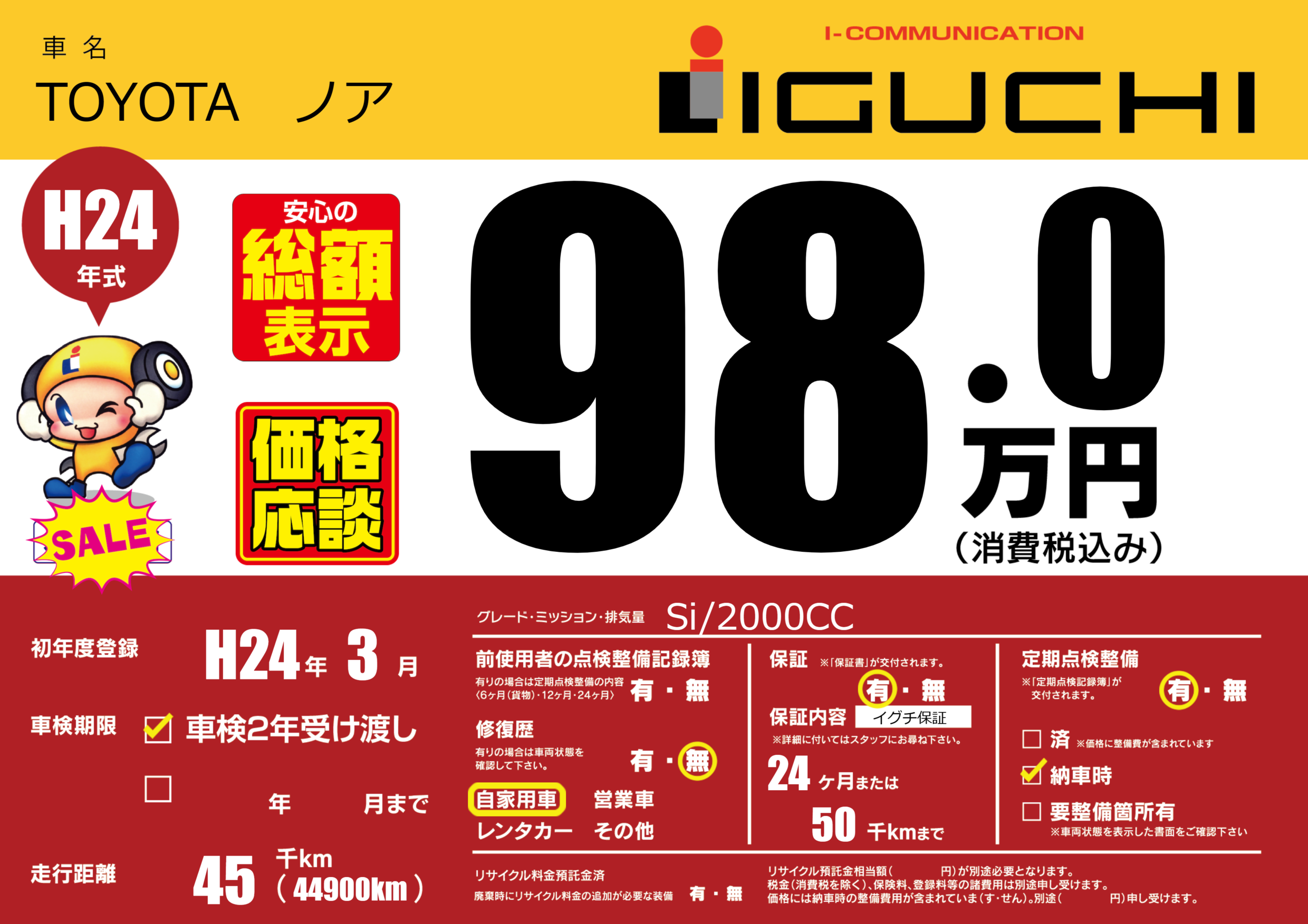 保証付き 保証内容(イグチ保証) 24ヶ月または(50)千kmまで |