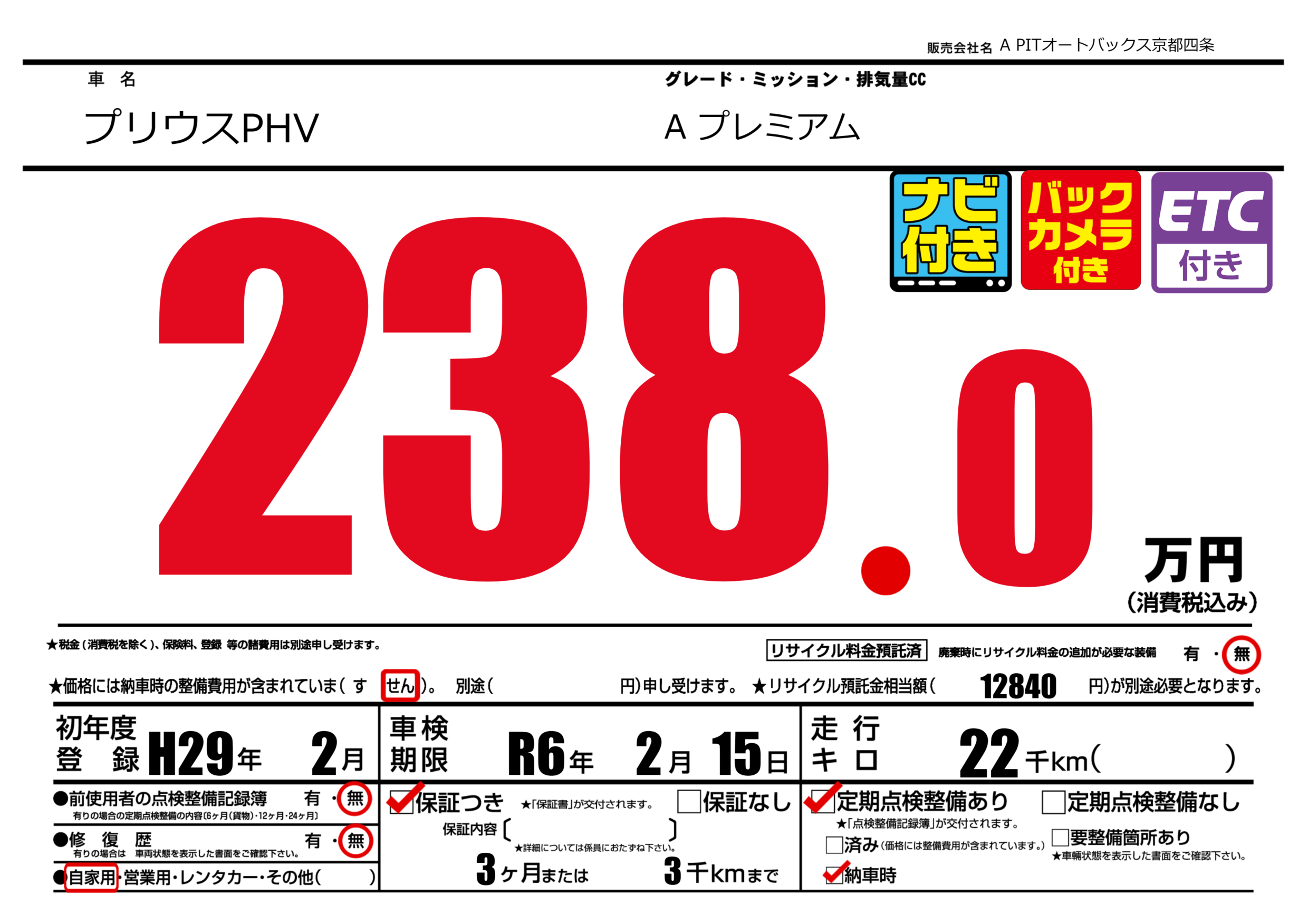 なし | 車検制限 | R6年2月15月 |