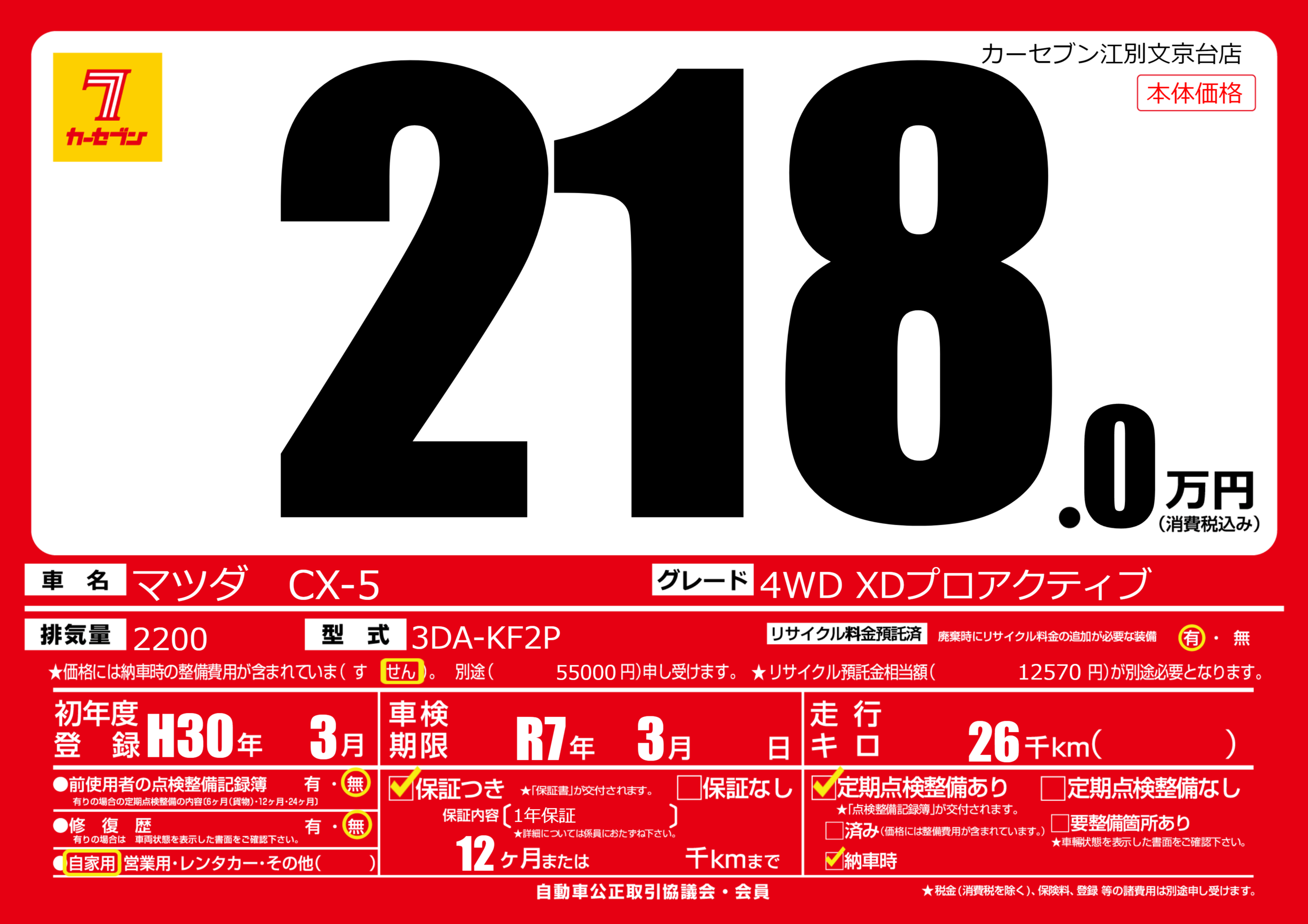 | 車名 | マツダ CX-5 | グレード ミッション 排気量 |