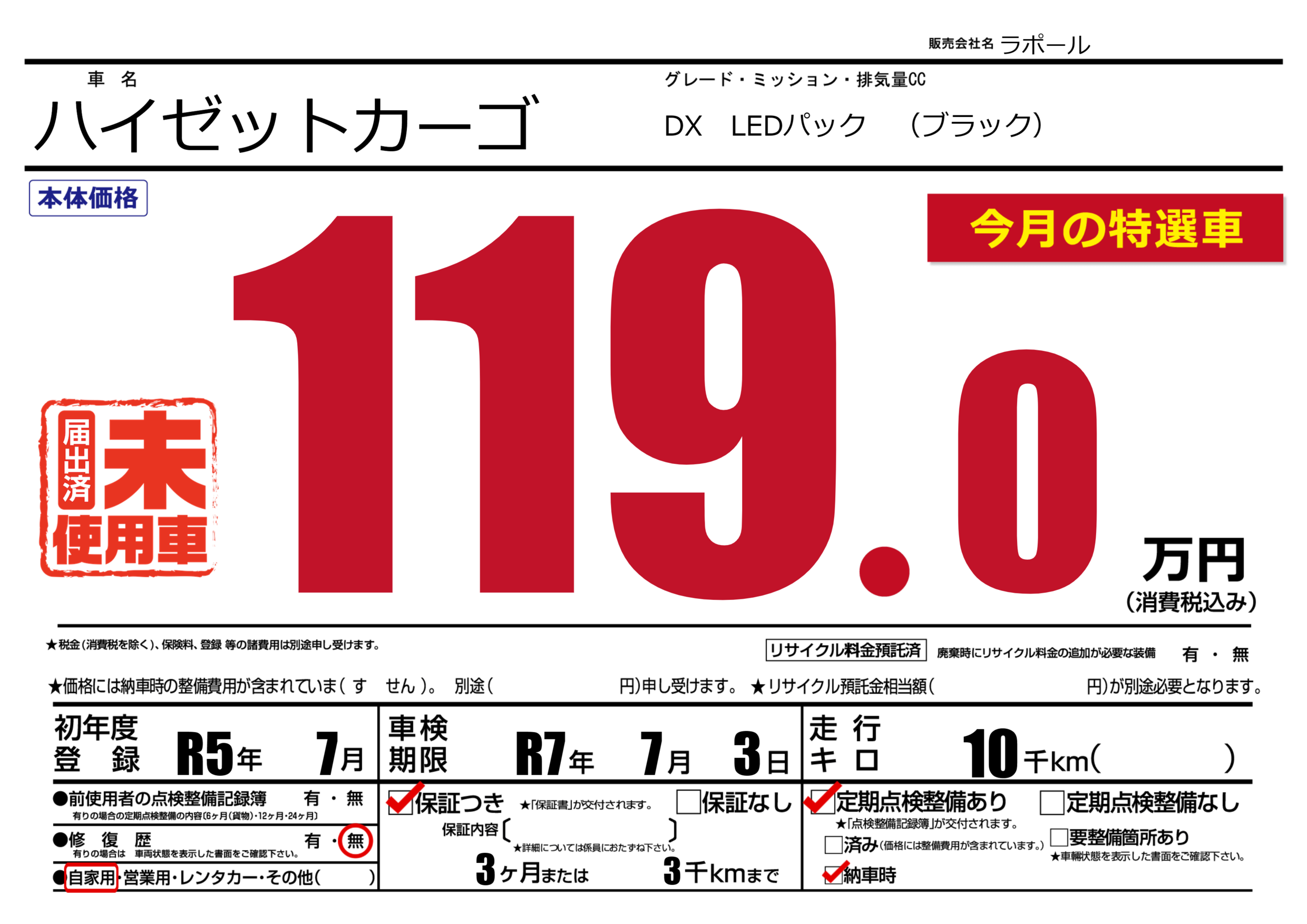 保証付き 保証内容(---) 3ヶ月または(3)千kmまで |
