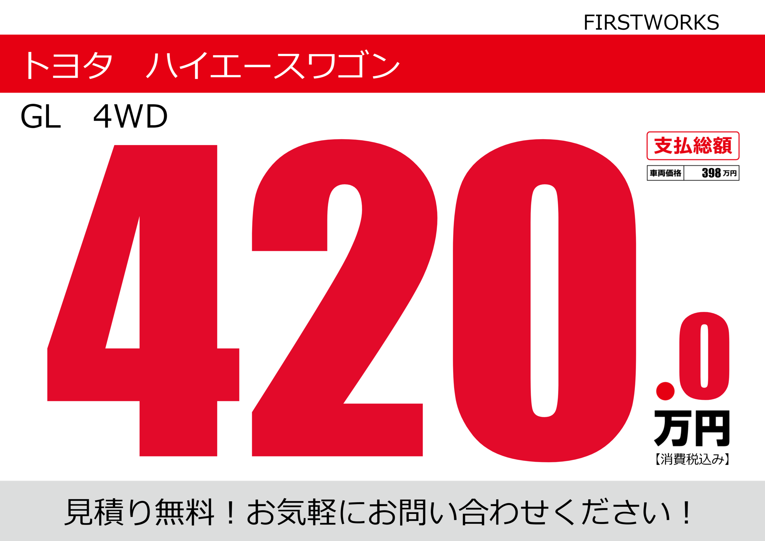 | 車名 | トヨタ ハイエースワゴン | グレード ミッション 排気量 |