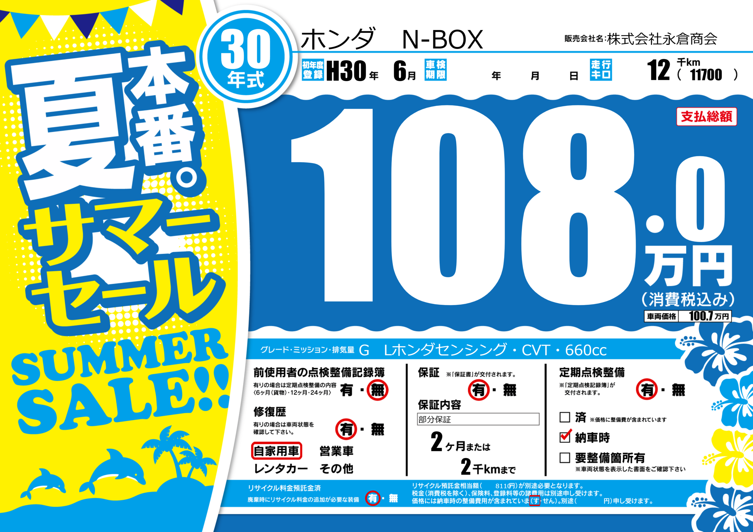 | 車名 | ホンダ N-BOX | グレード ミッション 排気量 |