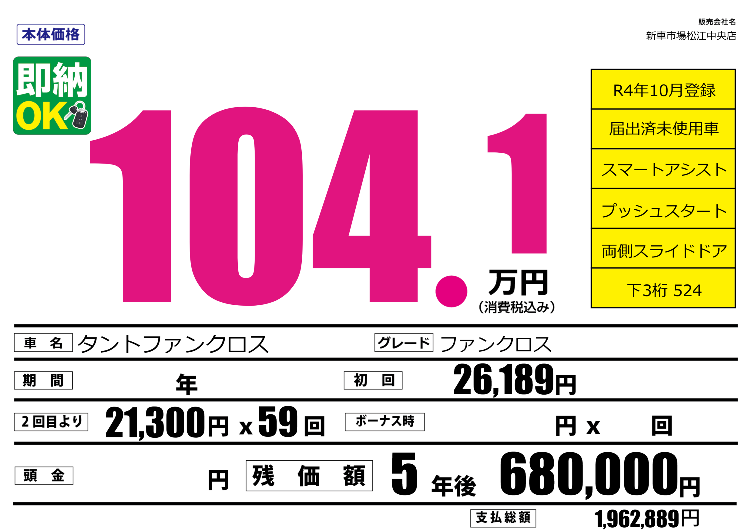 | 車名 | タントファンクロス | グレード ミッション 排気量 |