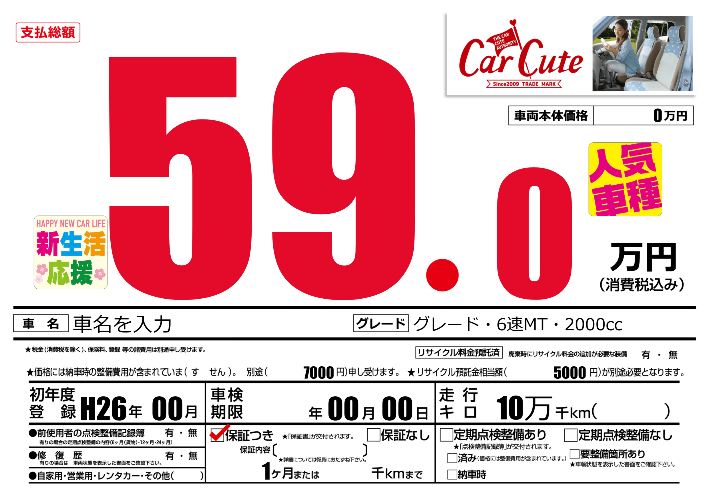 | 車検制限 | - 年 00月 00日 | ||