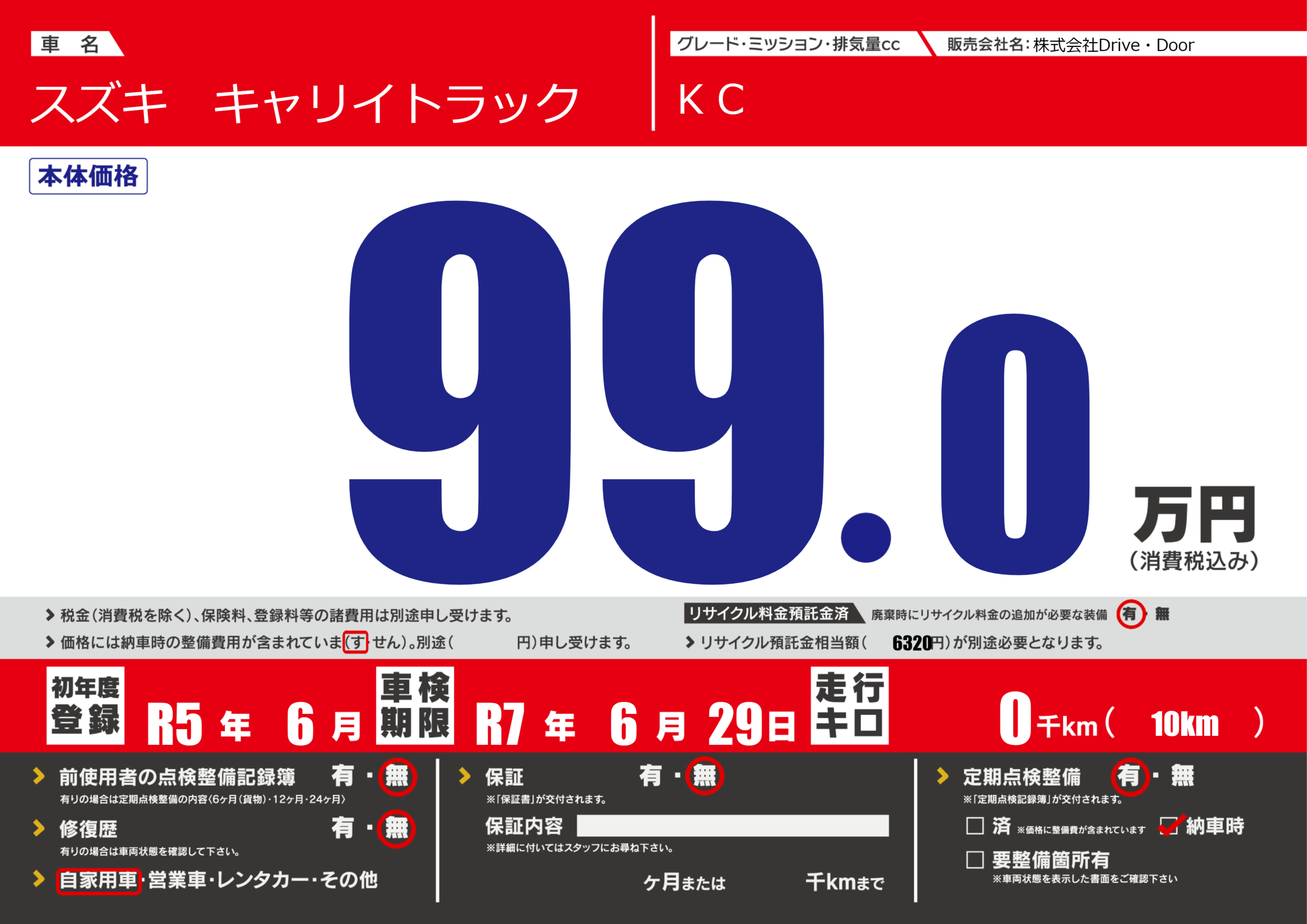 | 走行キロ | - | 初年度登録 | R5年6月 |