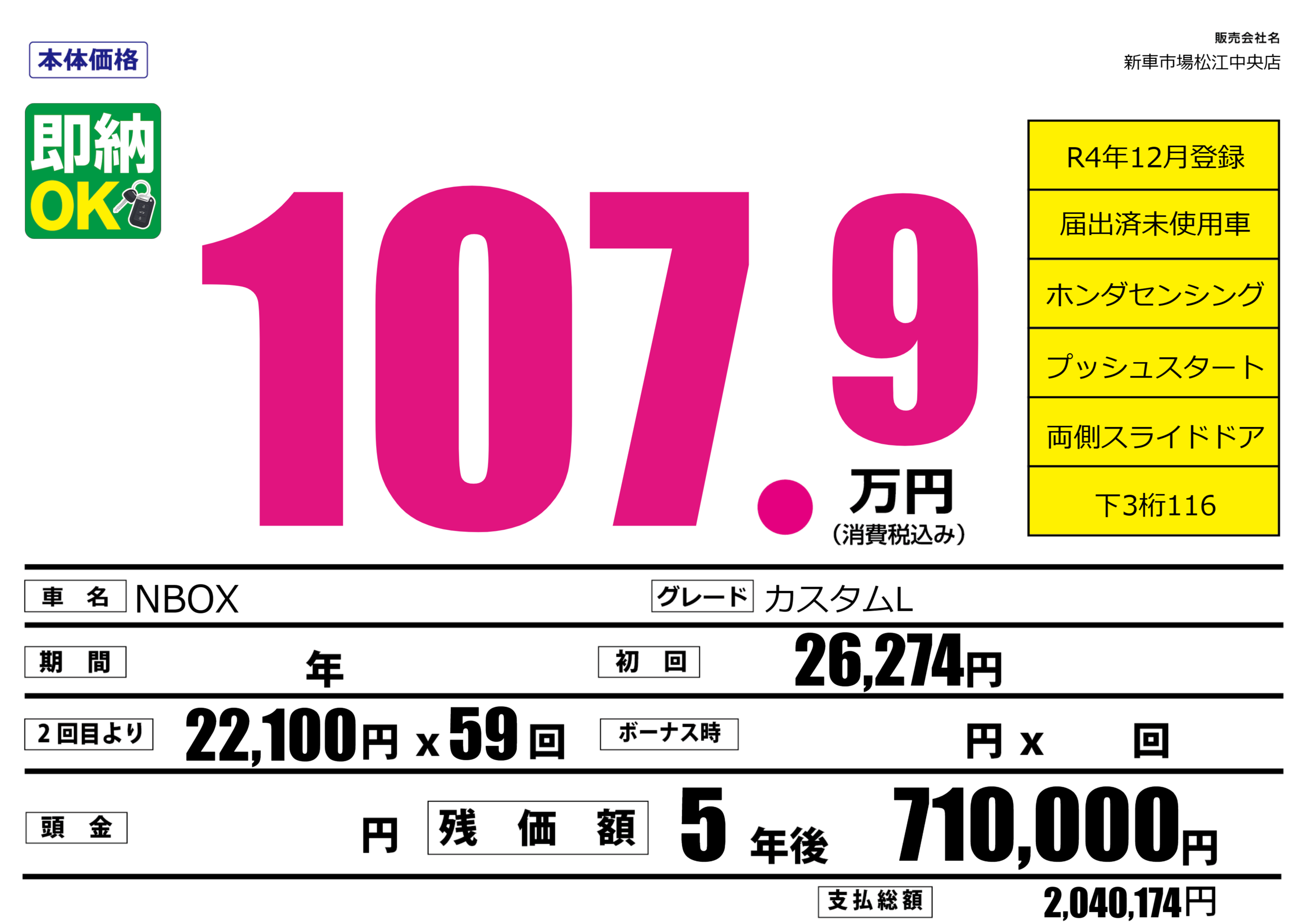 | 車名 | NBOX | グレード ミッション 排気量 |