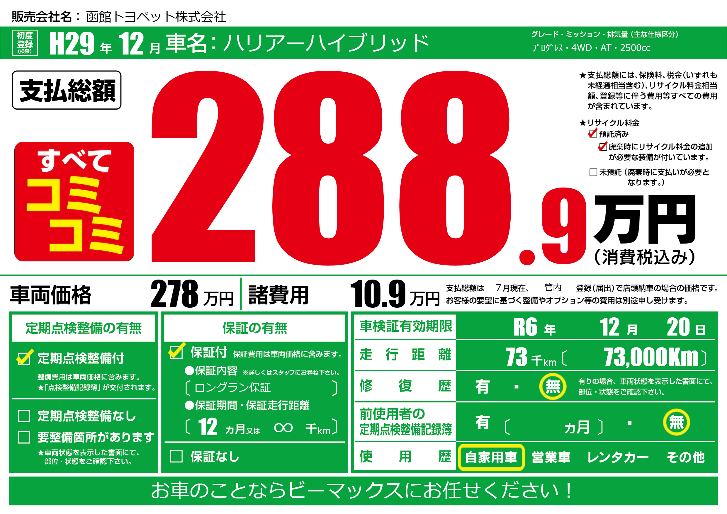 | 走行キロ | 7.3万km | 初年度登録 | H29年12月 |
