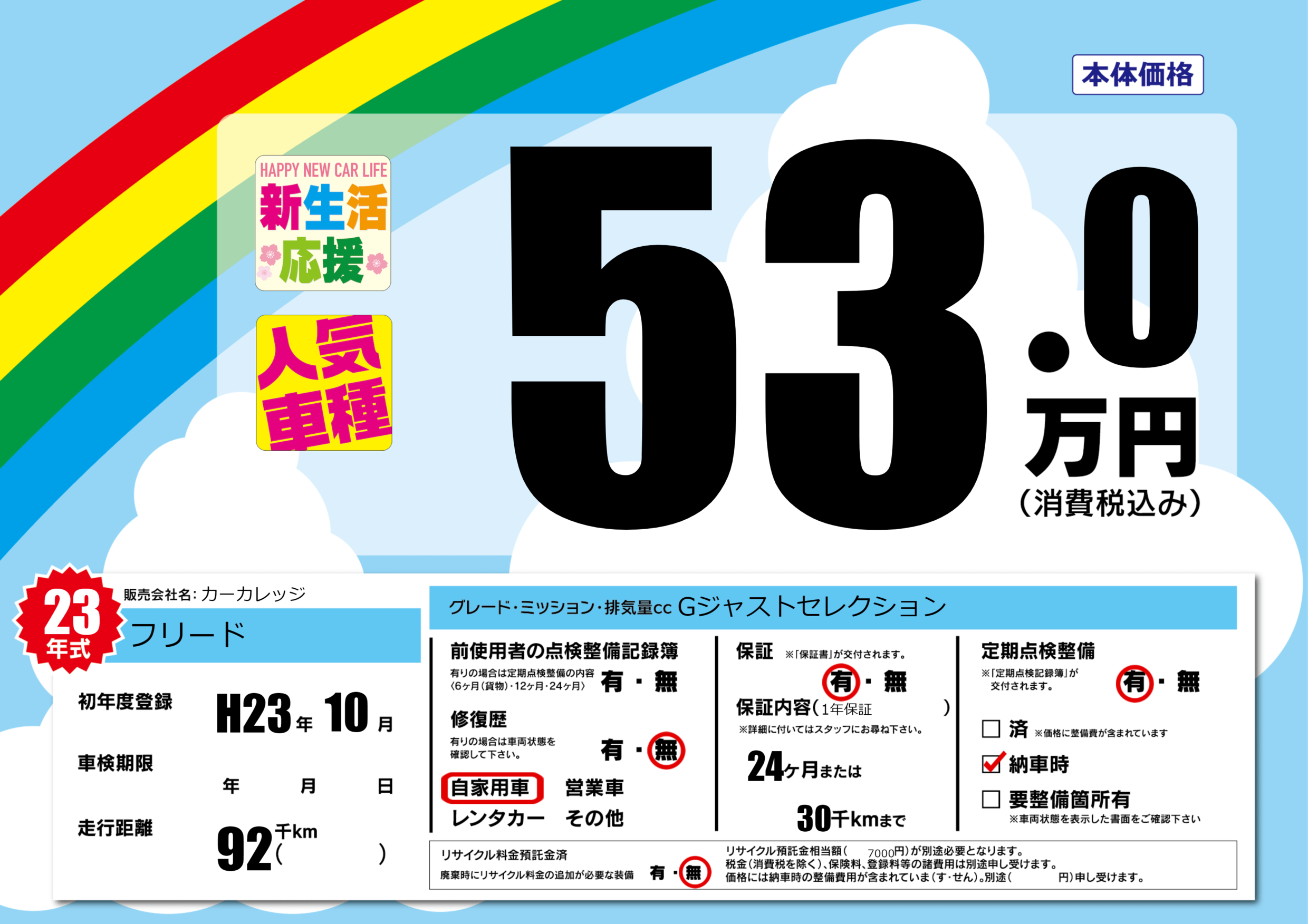 | 走行キロ | 9.2万km | 初年度登録 | H23年10月 |