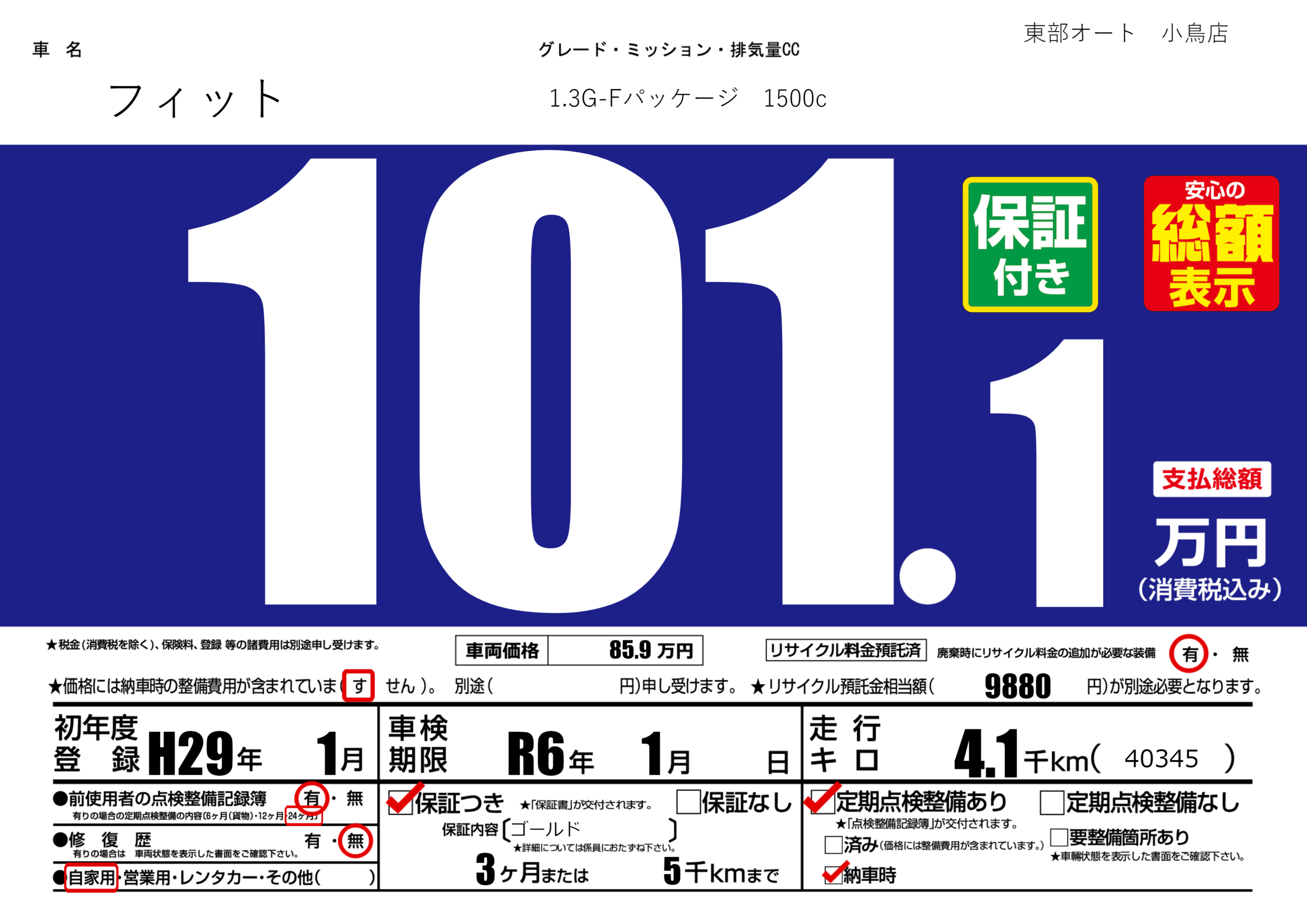 | 定期点検整備 | 定期点検整備あり 納車時あり | ||