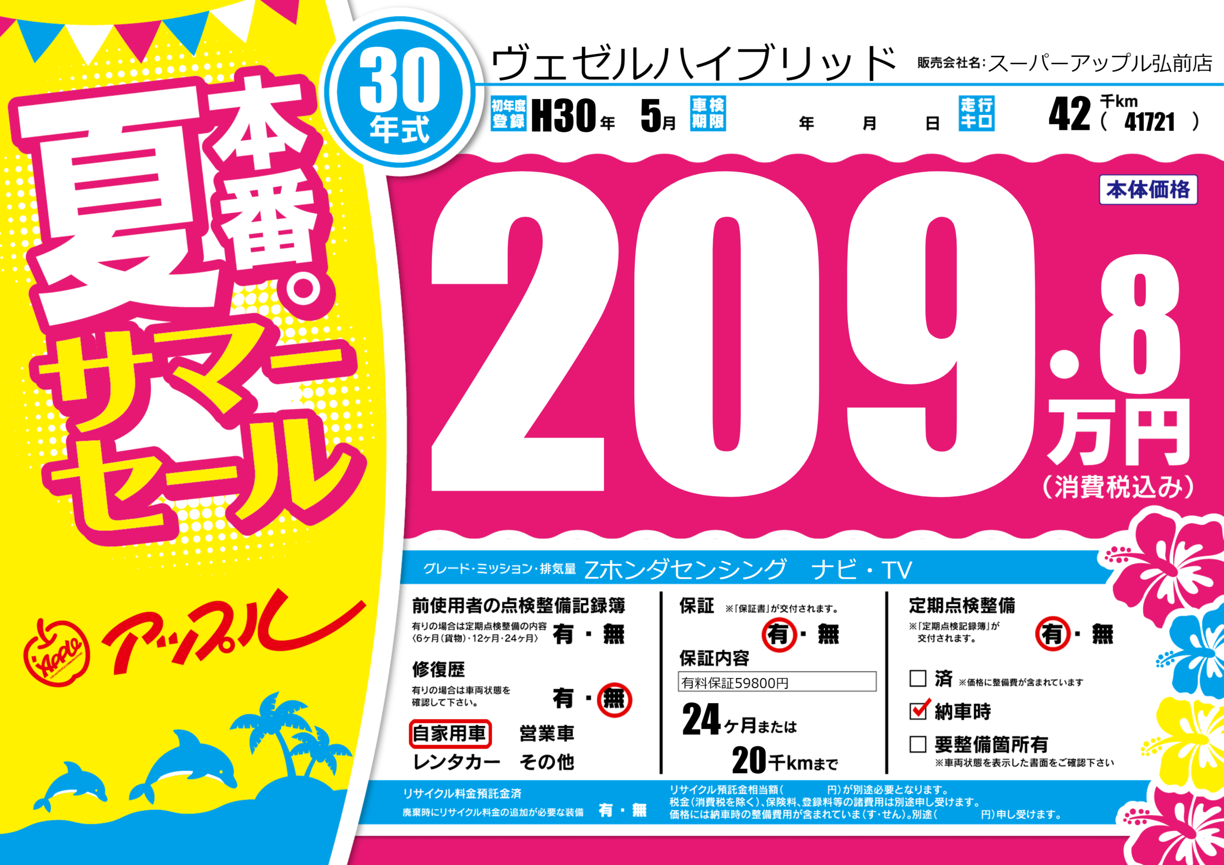 保証付き 保証内容(有料保証59800円) 24ヶ月または20千km |