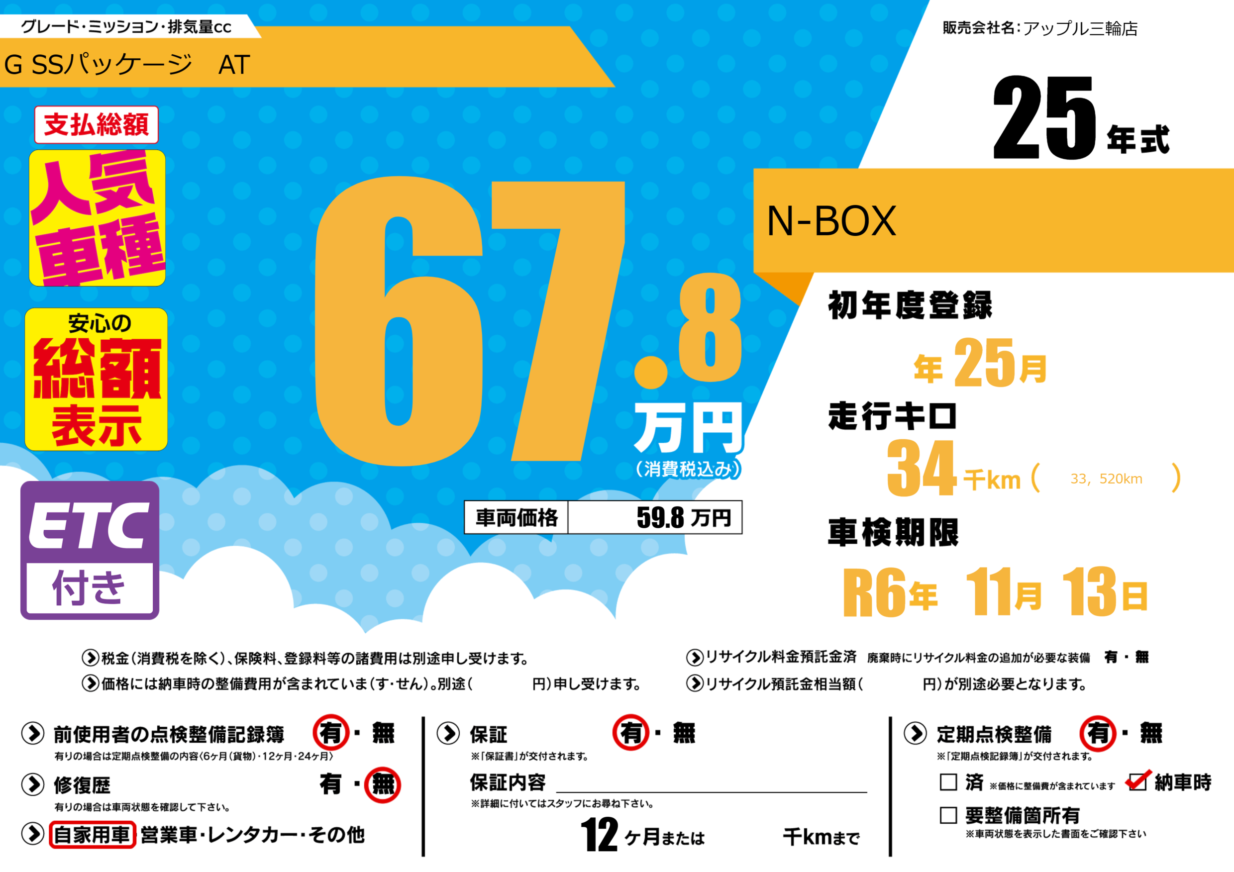 なし | 車検制限 | R6年11月13月 |