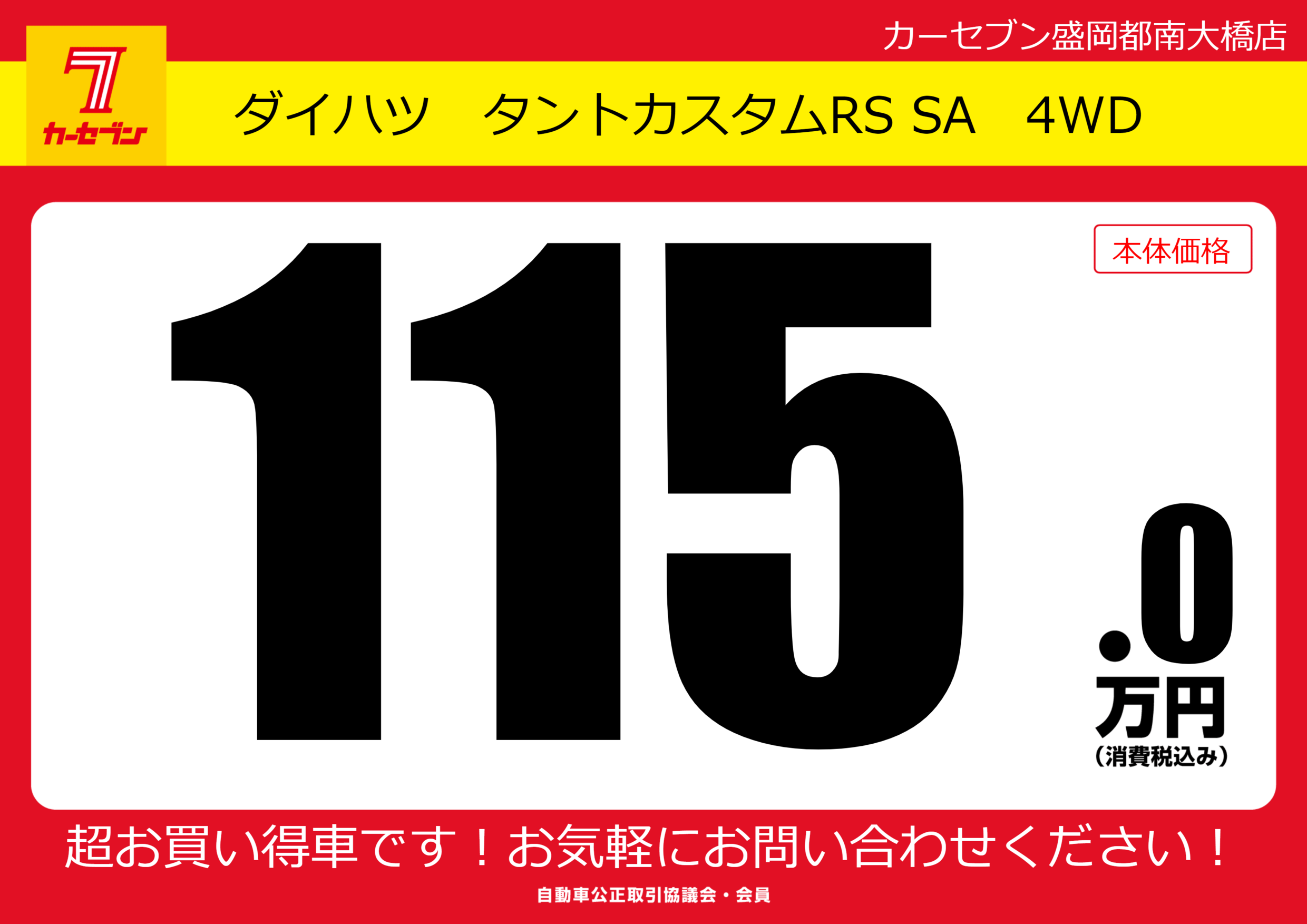 | 車名 | ダイハツ タントカスタムRS SA 4WD | グレード ミッション 排気量 |