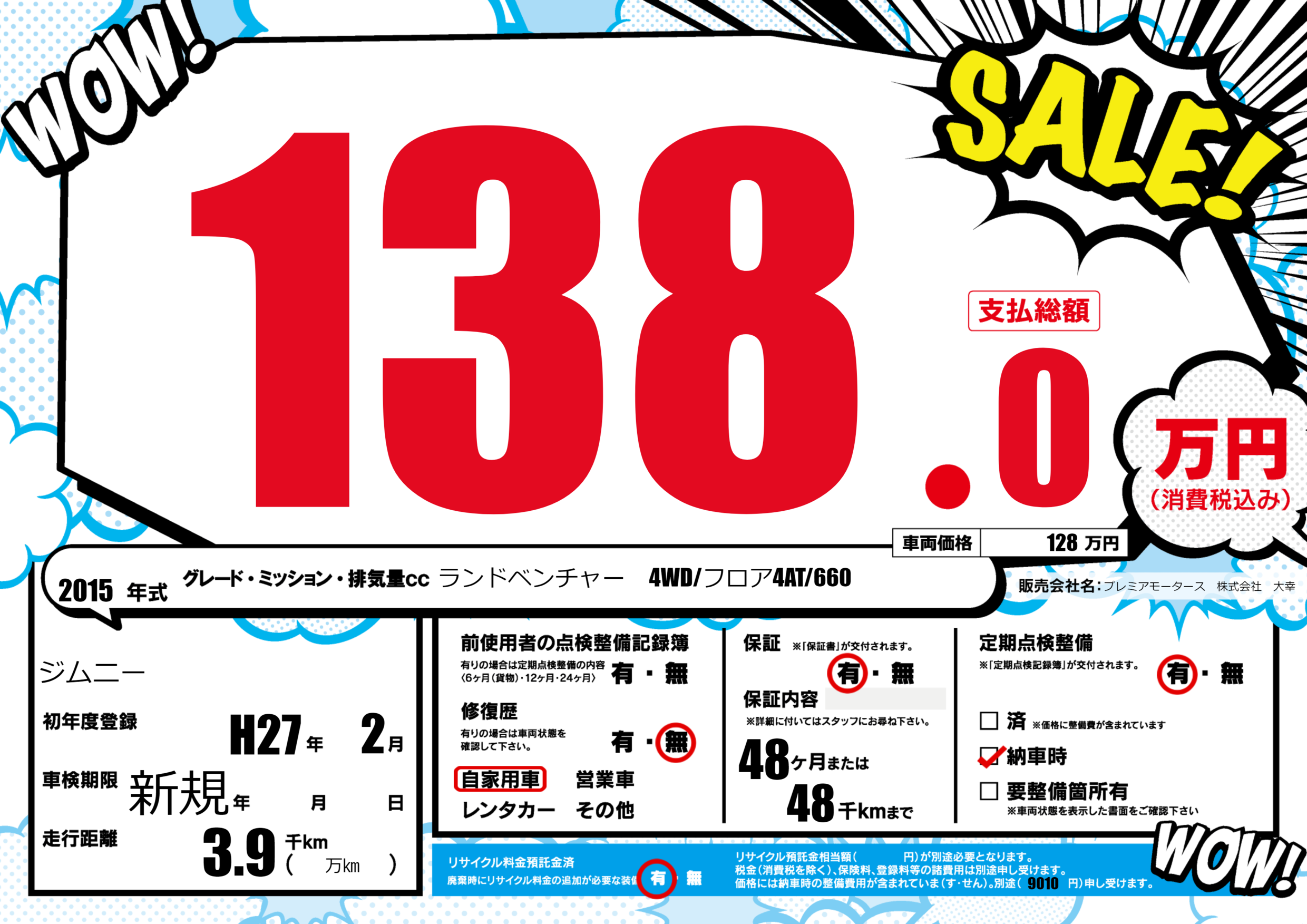 保証付き 保証内容(---) 48ヶ月または(48)千kmまで |