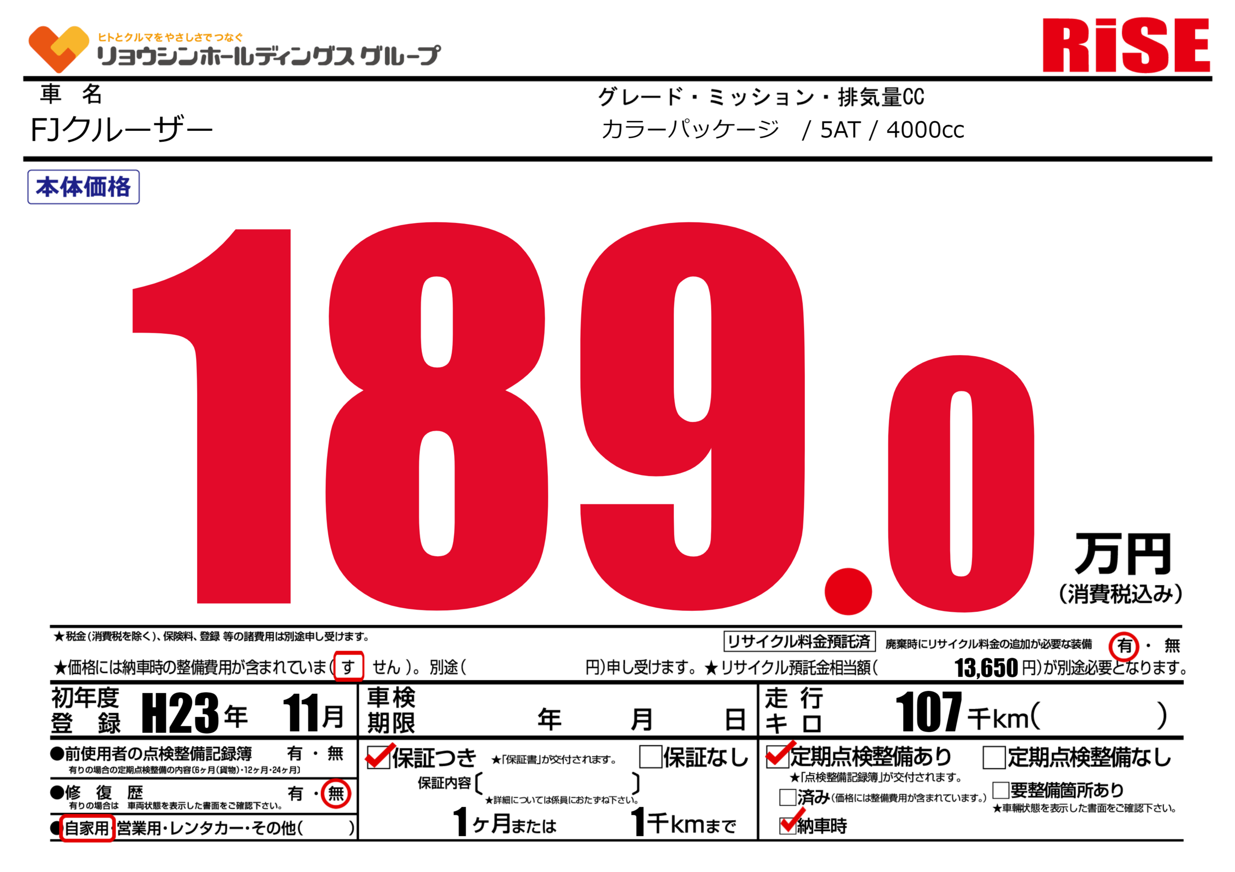 | 車名 | FJクルーザー | グレード ミッション 排気量 |