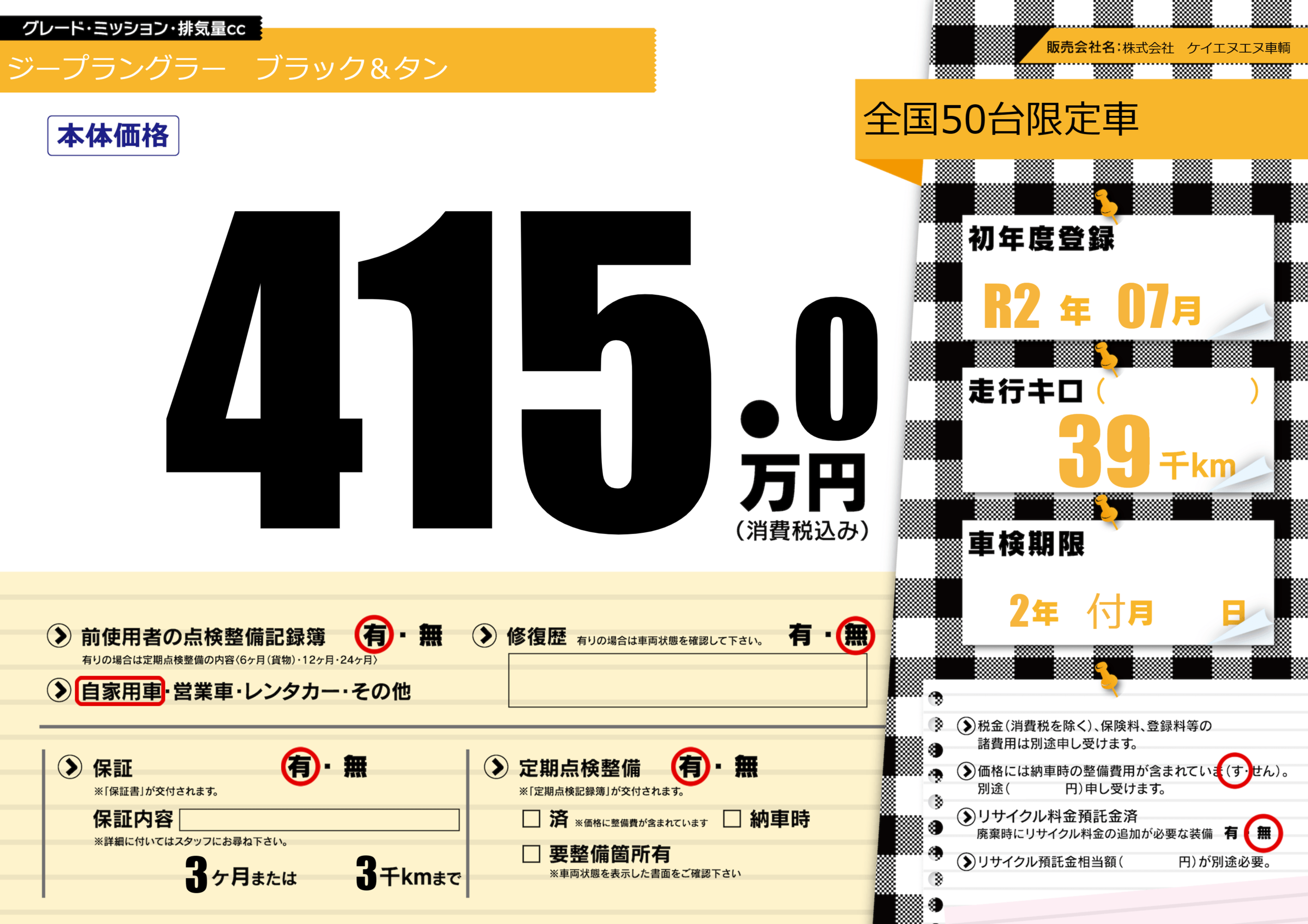 保証付き 保証内容(---) 3ヶ月または(3)千kmまで |