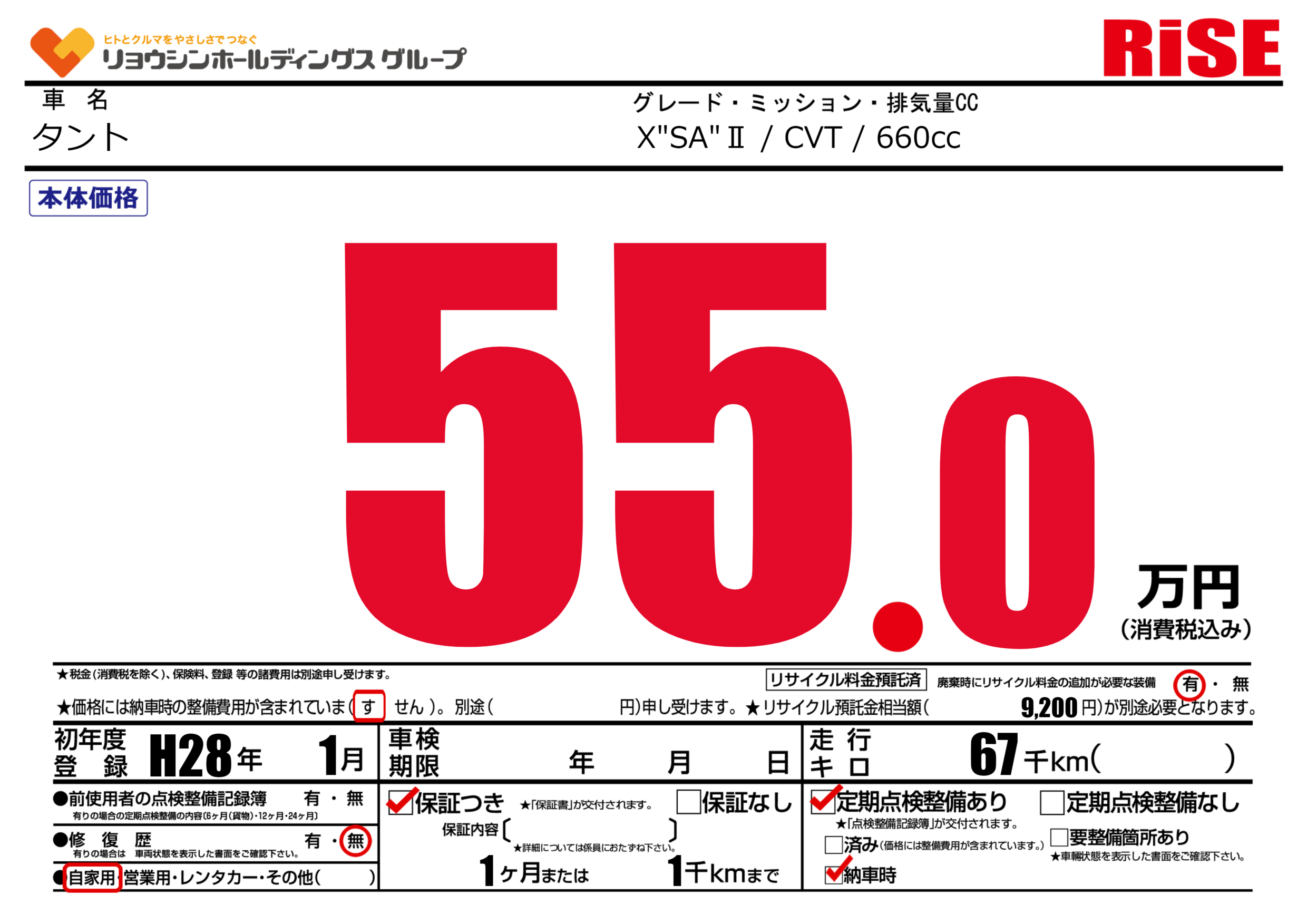| 車名 | タント | グレード ミッション 排気量 |