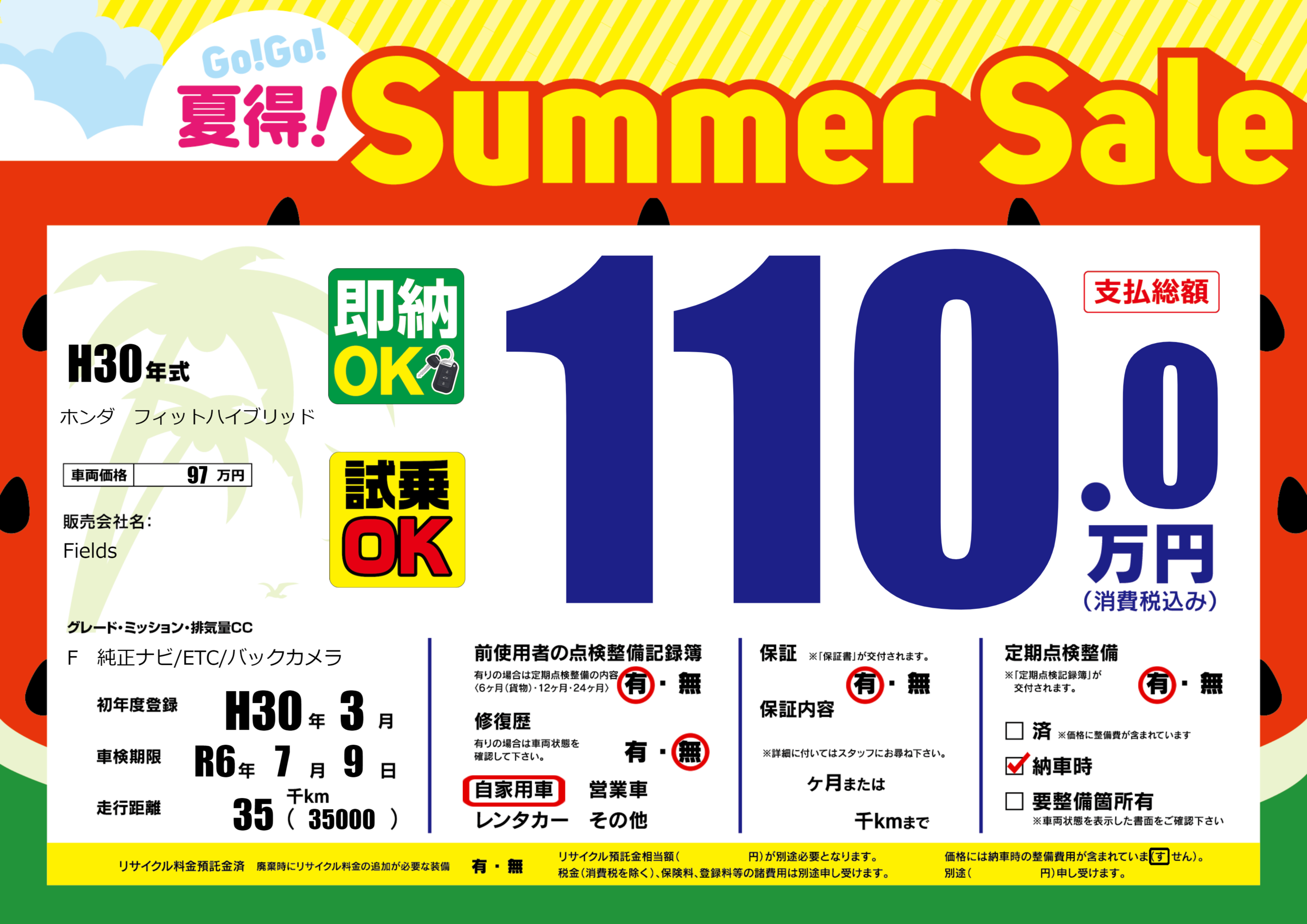 | 車名 | ホンダ フィットハイブリッド | グレード ミッション 排気量 |