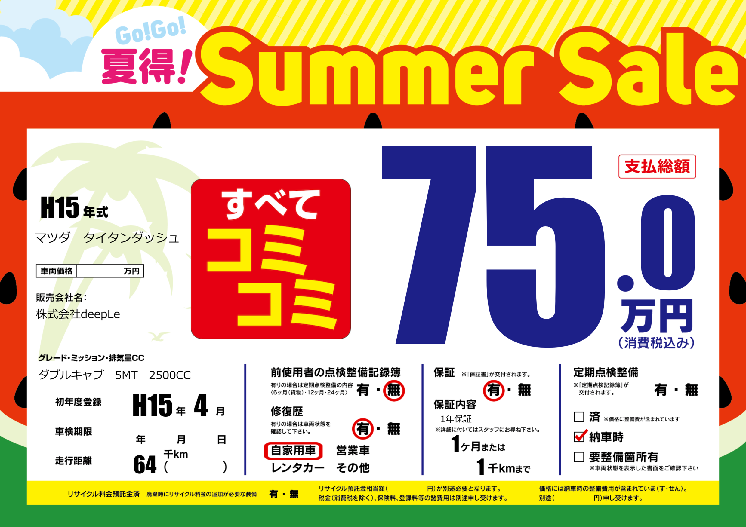 | 定期点検整備 | 納車時あり | ||