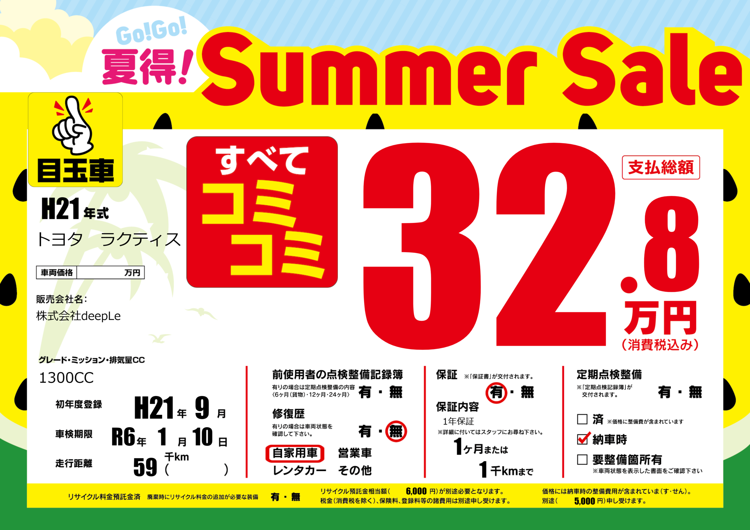 | 走行キロ | 5.9万km | 初年度登録 | H21年9月 |