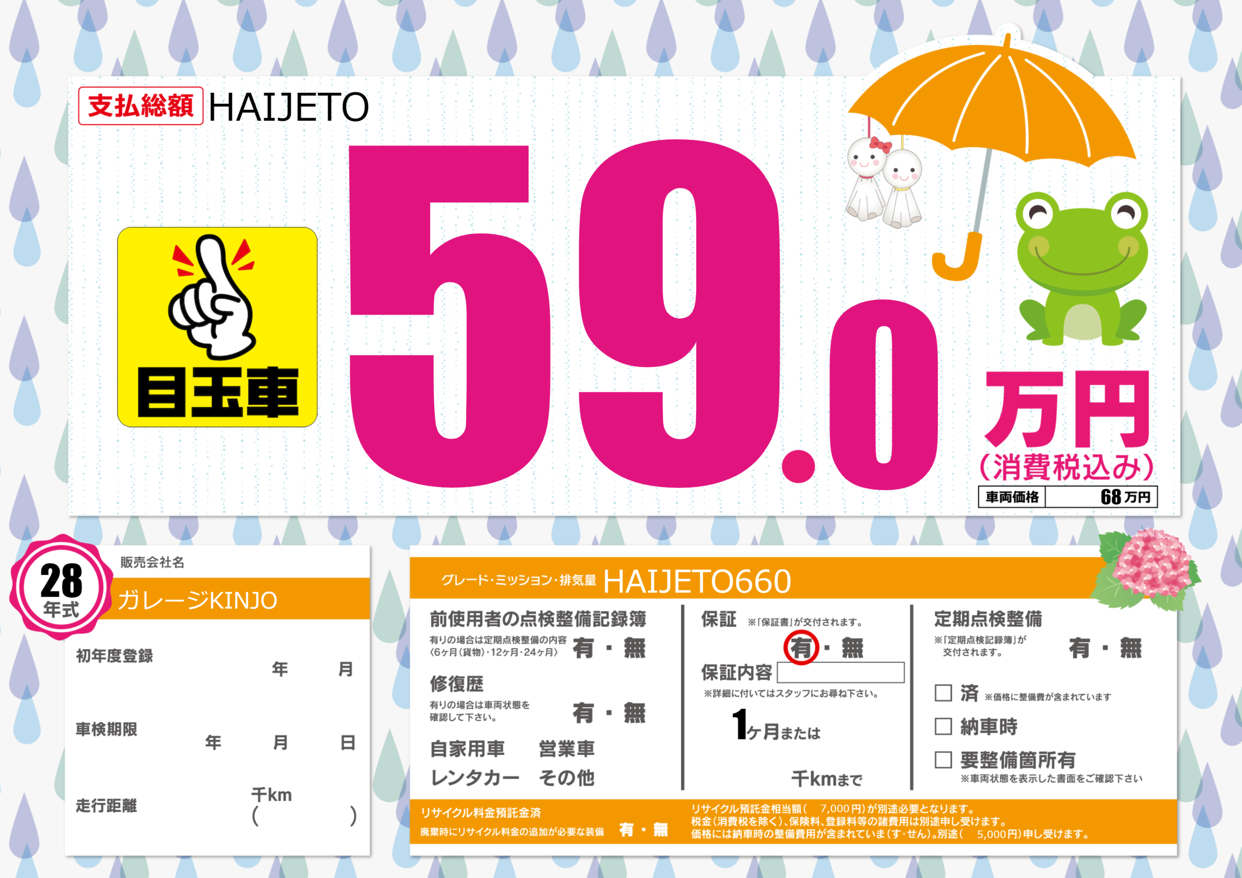 | 車名 | HAIJETO | グレード ミッション 排気量 |