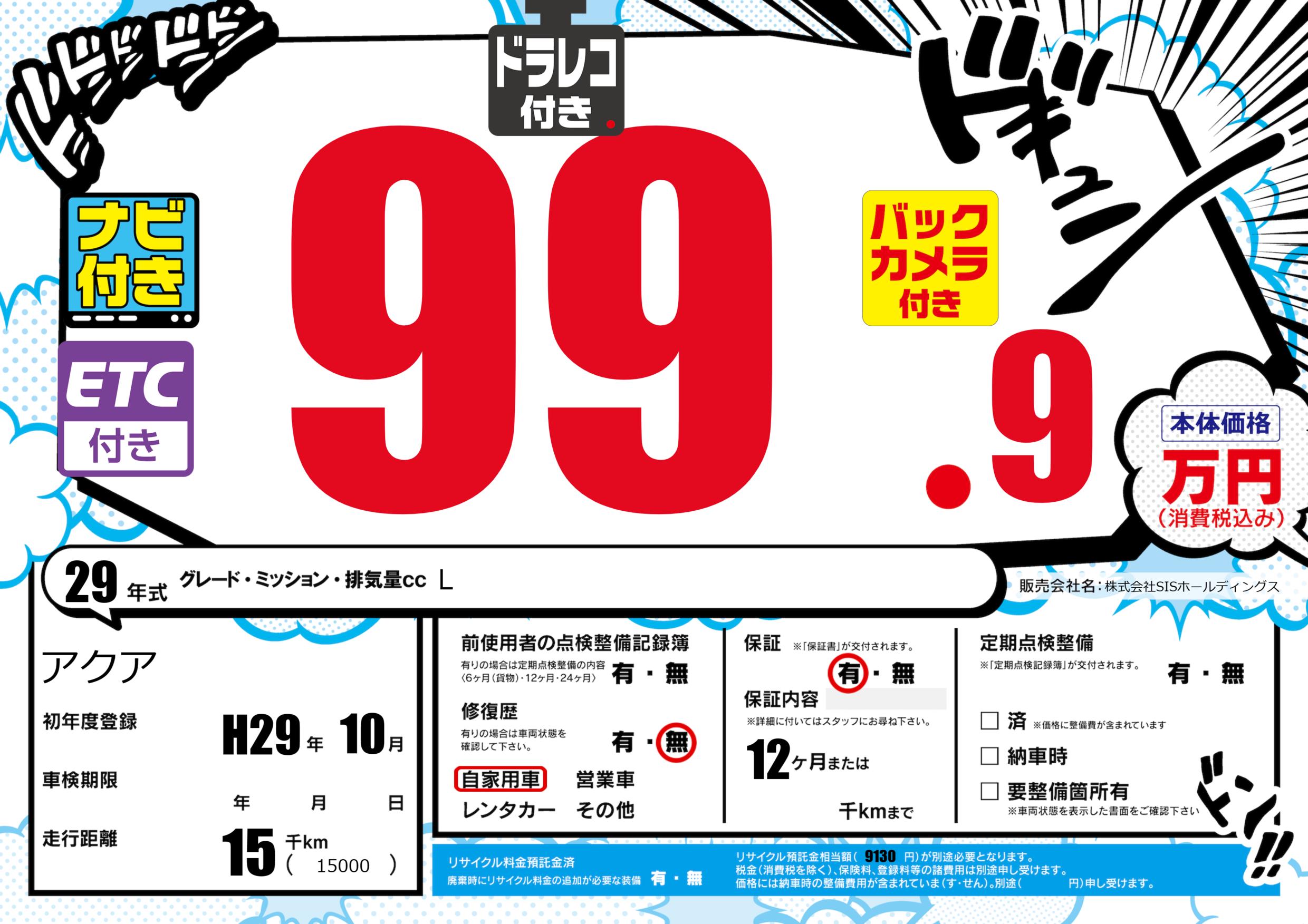 | 走行キロ | 1.5万km | 初年度登録 | H29年10月 |
