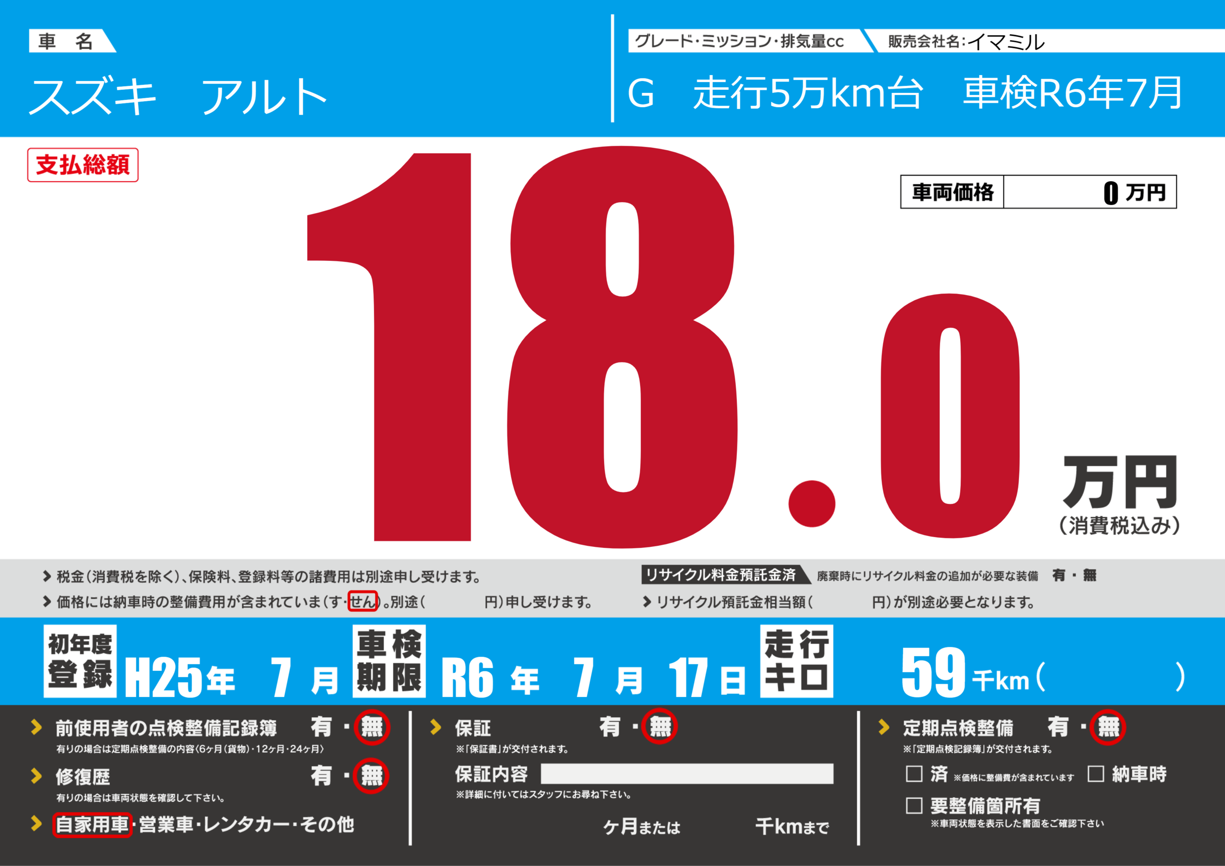 | 車検制限 | R6年 7月 17日 | ||