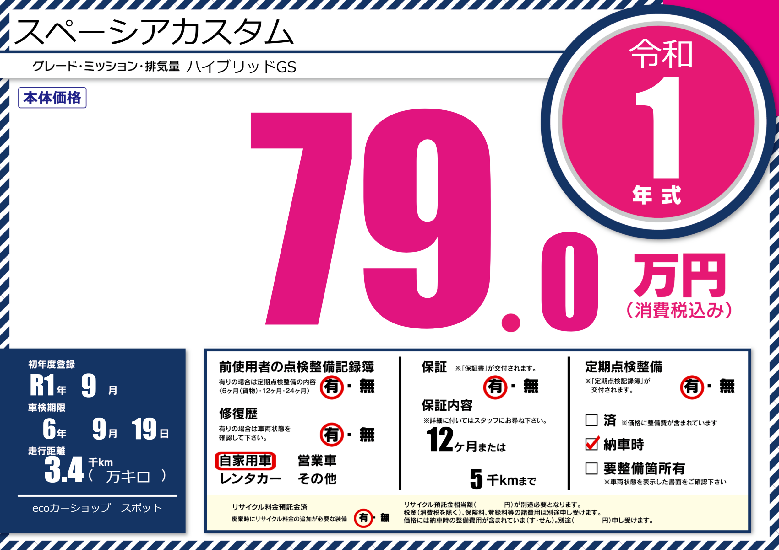 なし | 車検制限 | 6年9月19月 |