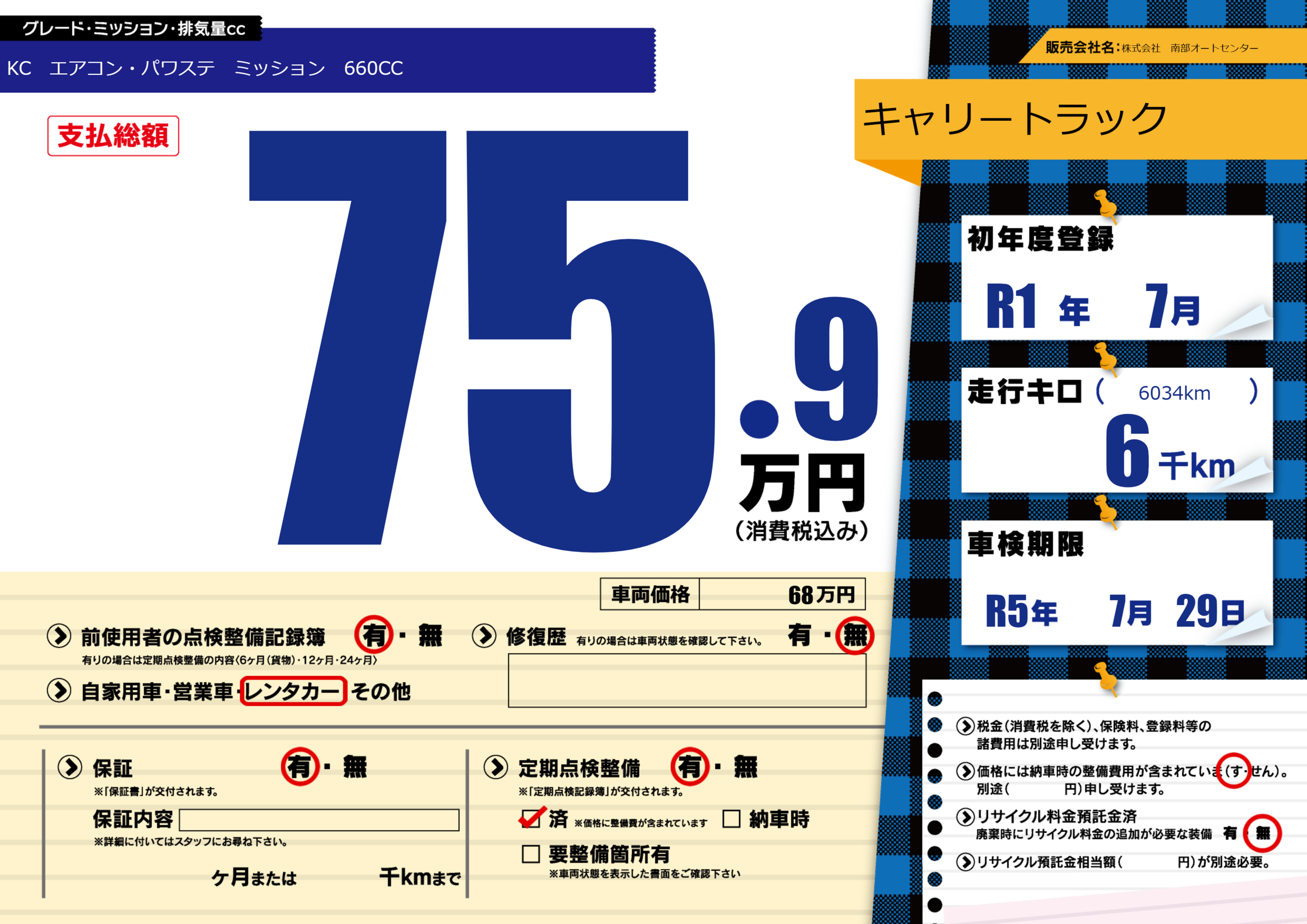 | 定期点検整備 | 定期点検整備あり 定期点検整備済み | ||