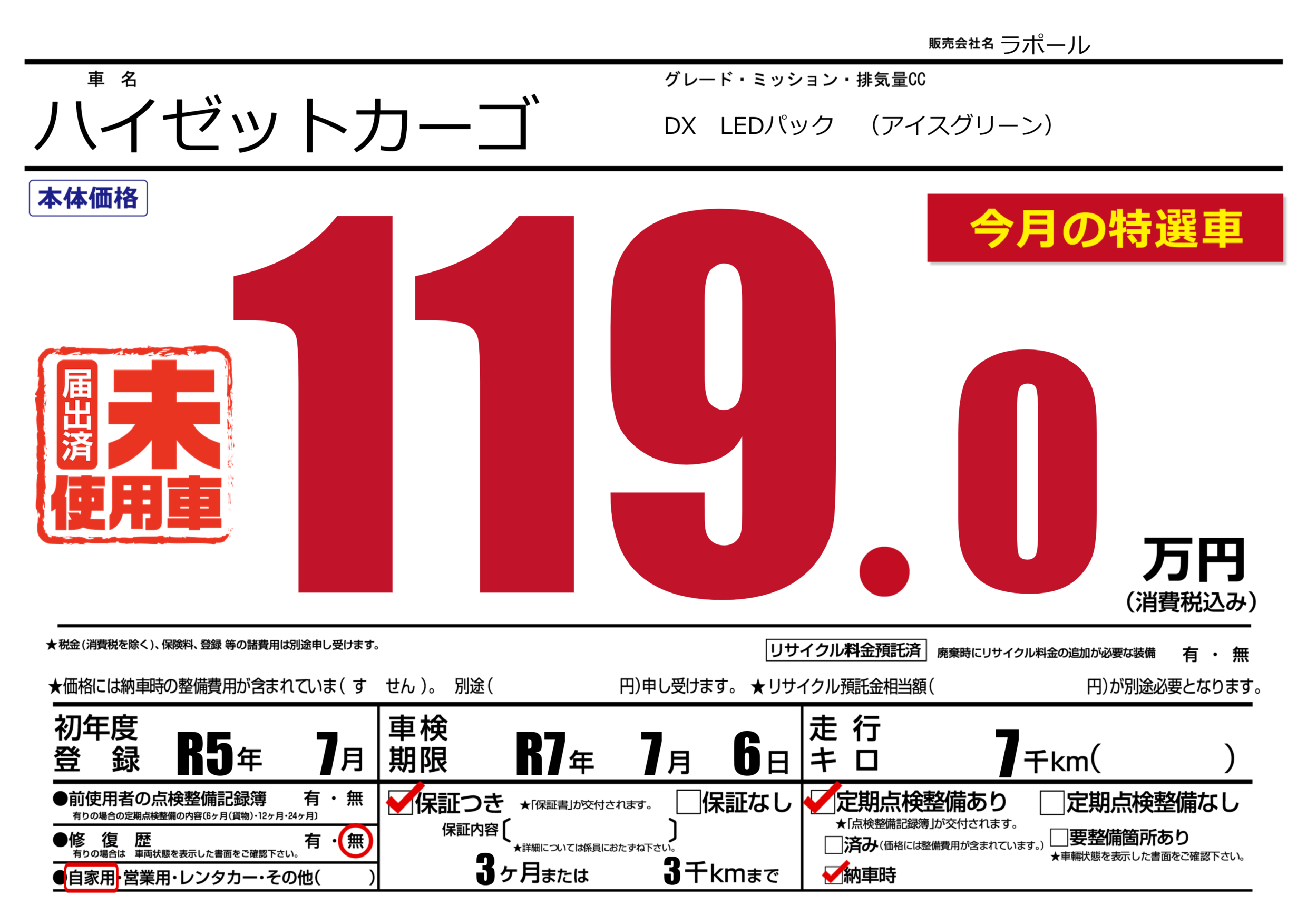 保証付き 保証内容(---) 3ヶ月または(3)千kmまで |