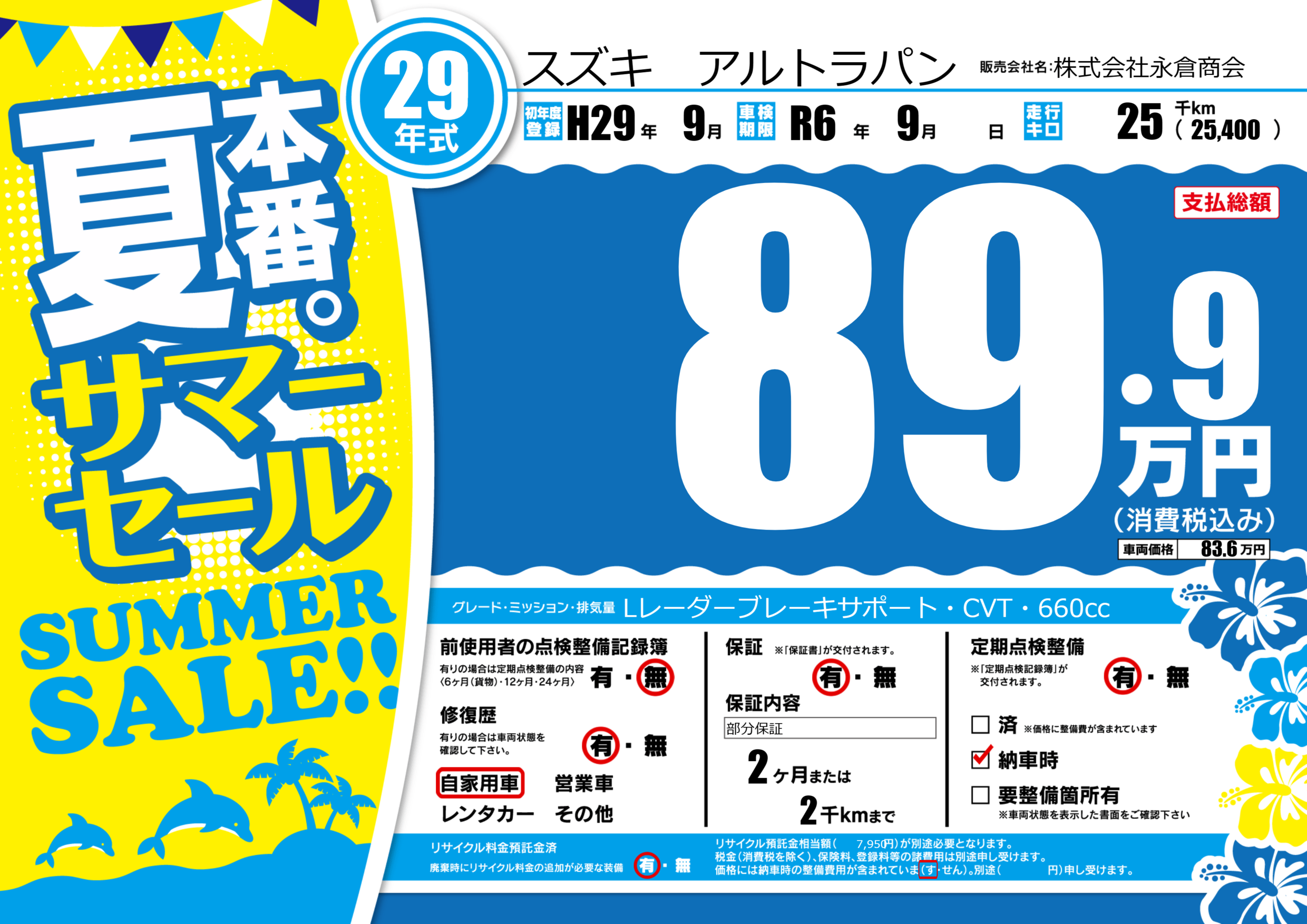 | 定期点検整備 | 定期点検整備あり 納車時あり | ||