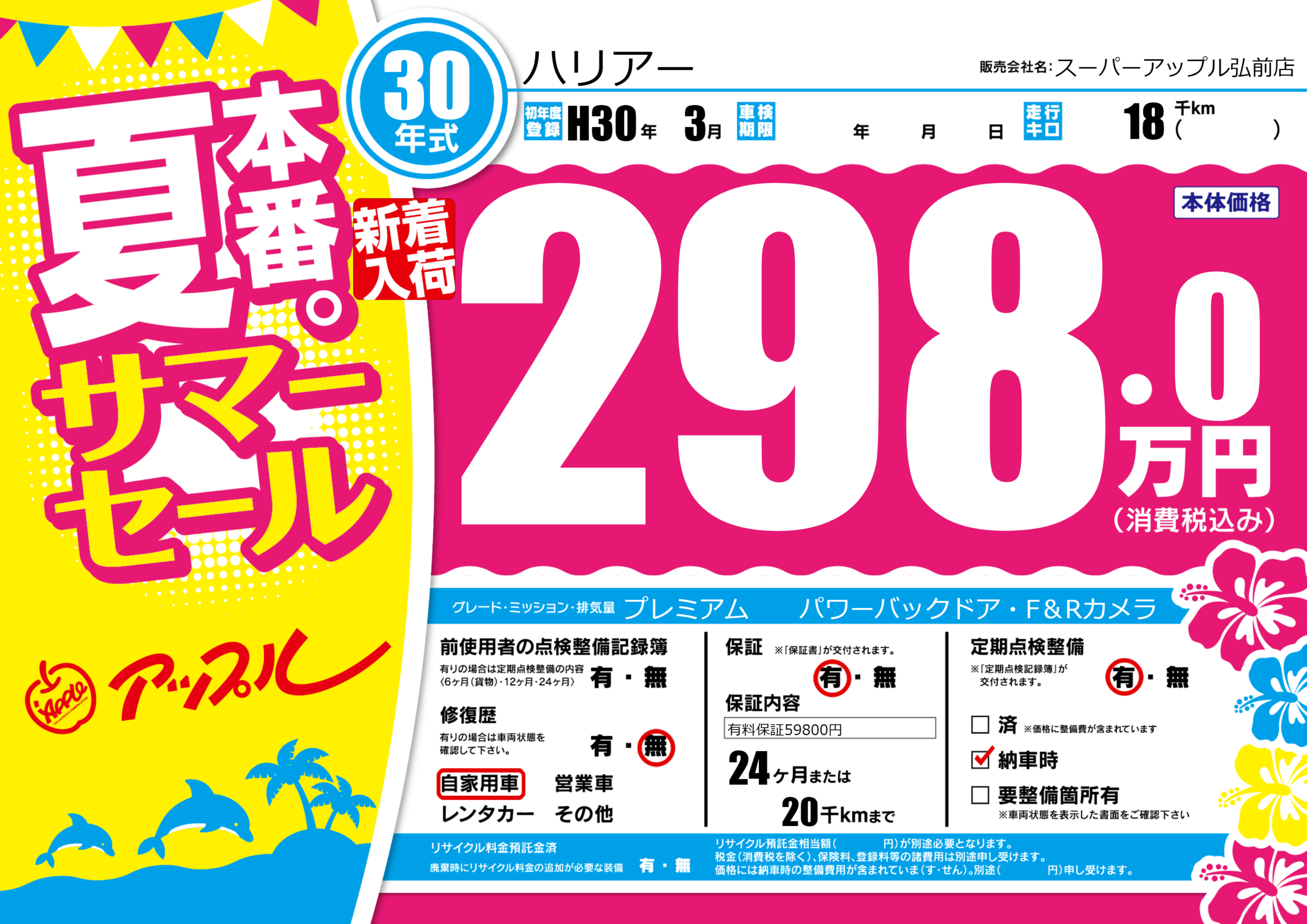 | 走行キロ | 1.8万km | 初年度登録 | H30年3月 |